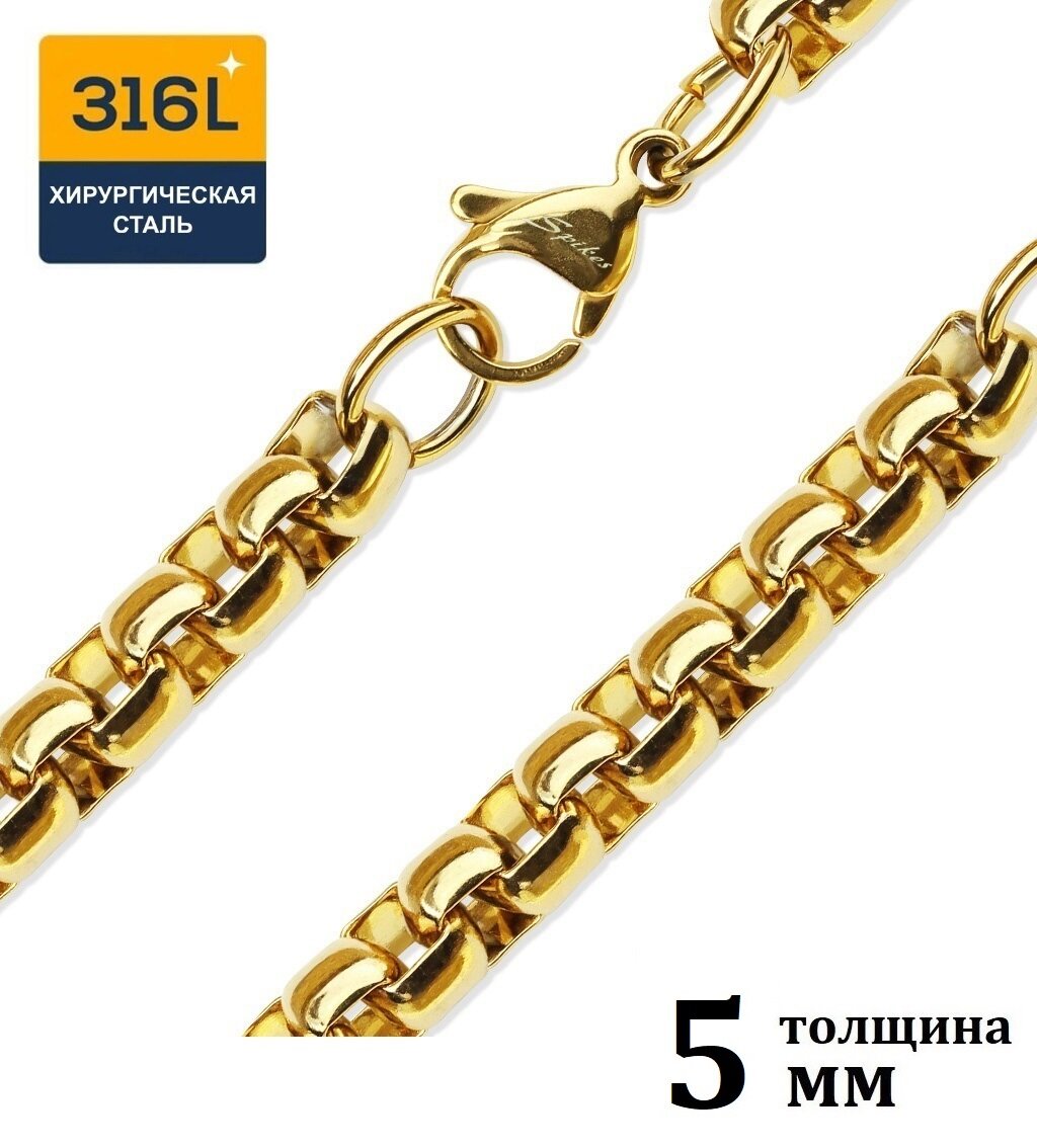 Купить Цепочка мужская из стали, плетение лобстер. IP-покрытие золотом, Толщина 5 мм, длина 50 см/ Spikes