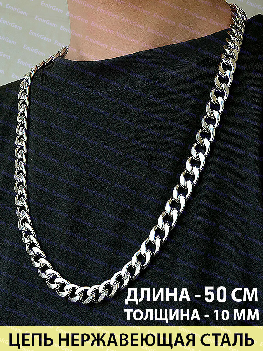 СохранитьЦепь на шею мужская 50 см, толщина 10 мм, нержавеющая сталь / широкая длинная цепочка мужская, кубинская цепь толстая, рэперская / стальная цепочка интересное:
