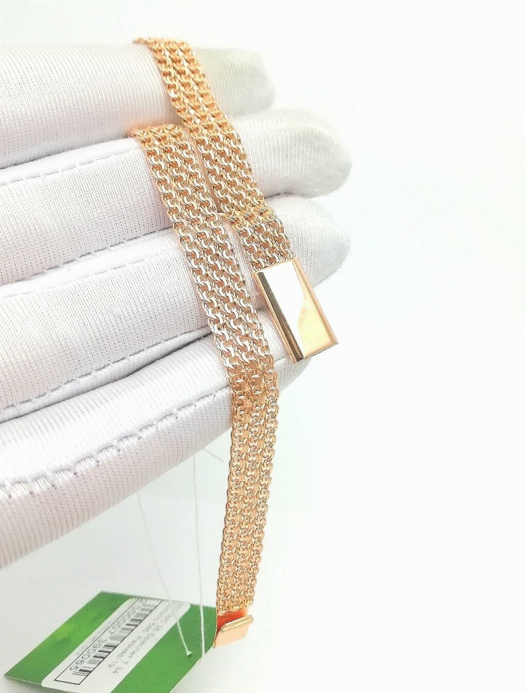 Купить Золотой браслет Тройной бисмарк из красного золота 585 пробы, полновесный, замок коробочка, длина 19 см, вес 7,20г