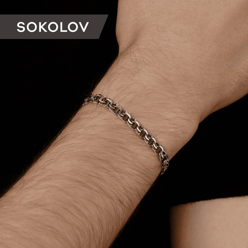 Купить Браслет мужской SOKOLOV из чернёного серебра, плетение Бисмарк, 925 проба 995140904, размер 24 см