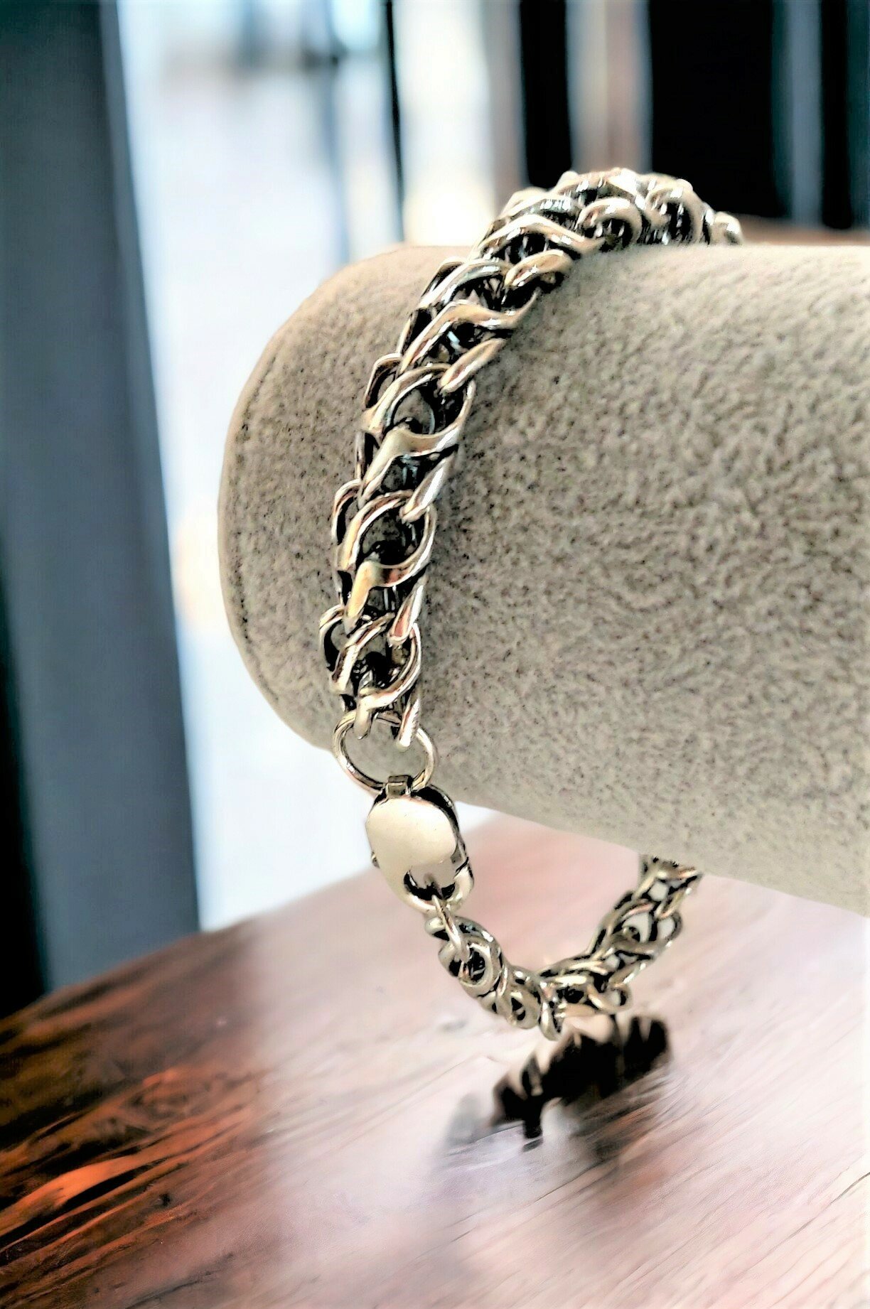 Браслет бисмарк двойной серебряный, 925 проба, размер 21 см.