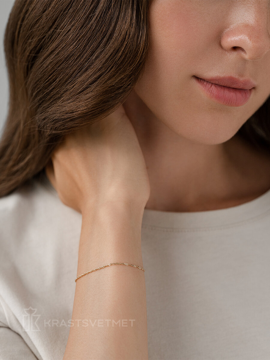 СохранитьKrastsvetmet Браслет Сингапур из желтого золота 585 пробы полновесный с алмазной гранью / Подарок Девочке, Девушке, Женщине / Браслет женский / 19 см интересное: