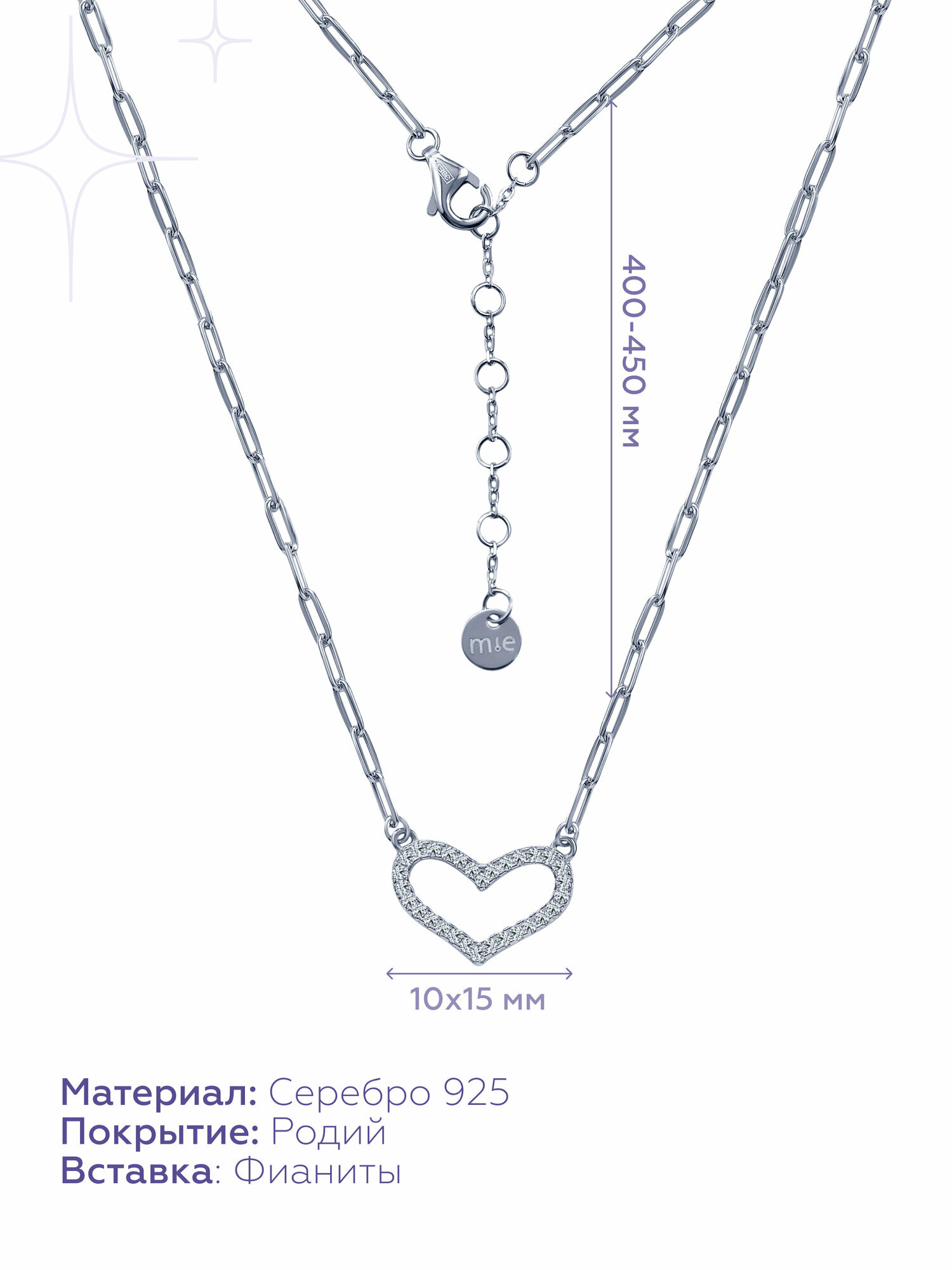 MIESTILO кулон серебряное колье серебряная подвеска подвеска на шею сердце сердечко интересное: