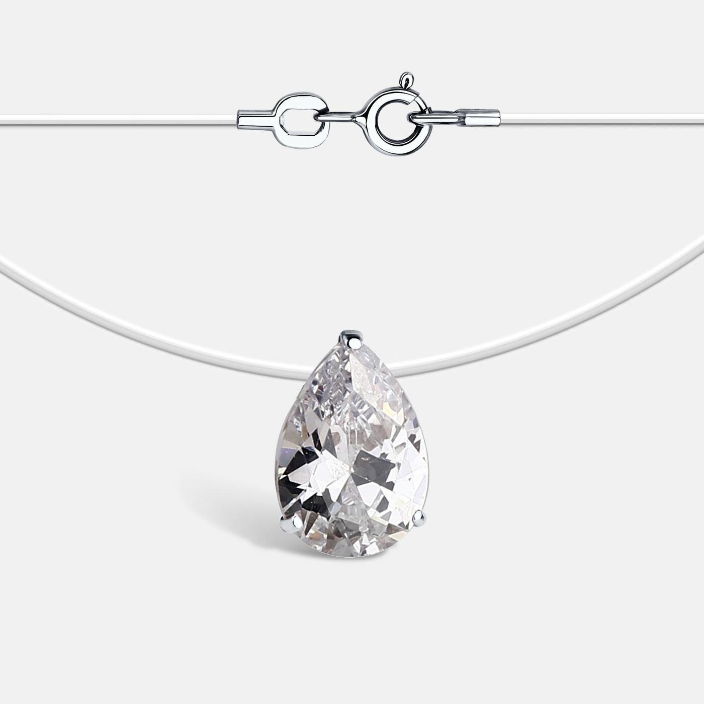 Купить Колье на леске Капля с фианитом серебро размер 42