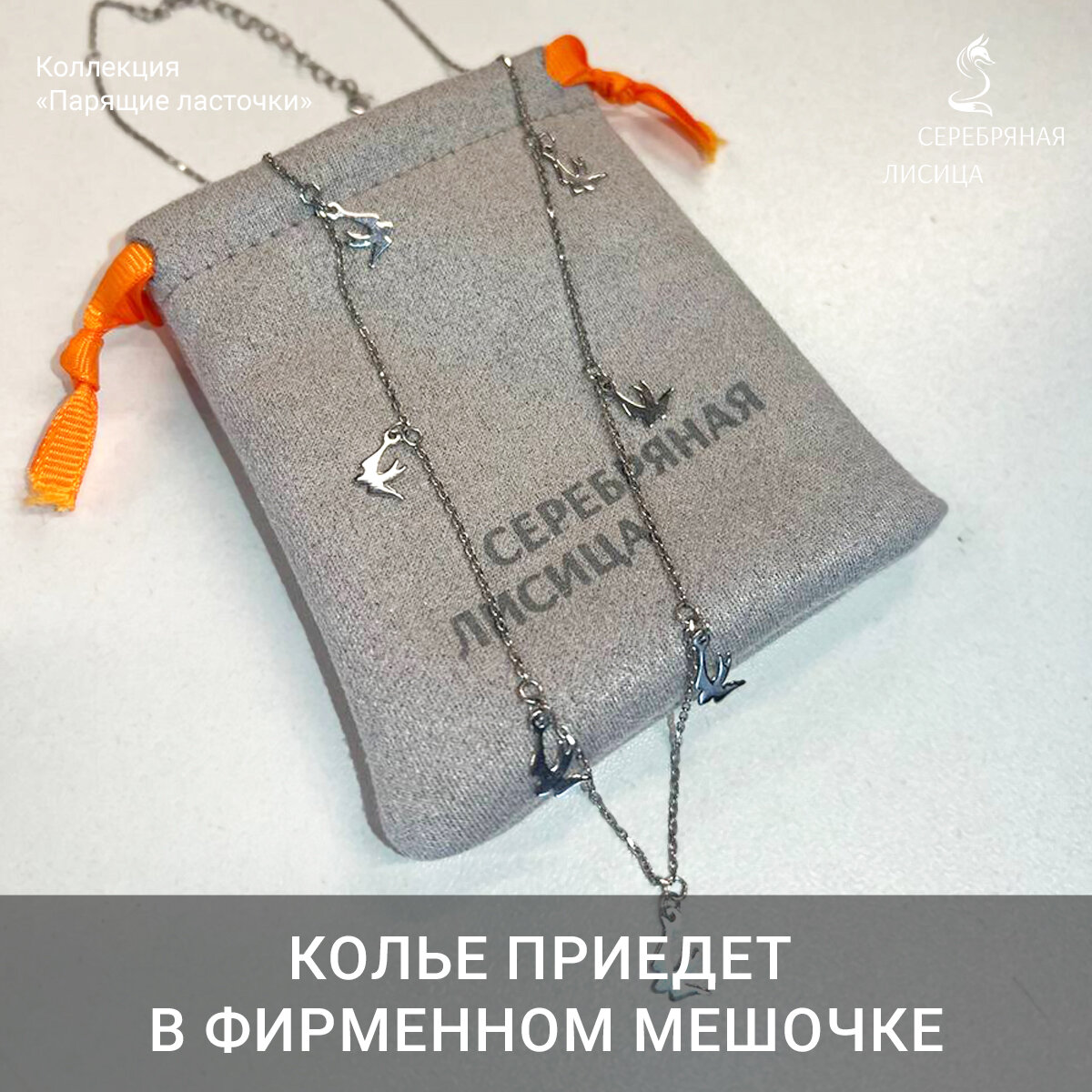 Серебряное колье с ласточками, серебряная цепочка 925 пробы, коллекция парящие ласточки интересное: