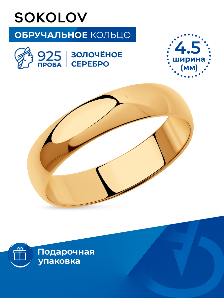 Обручальное кольцо SOKOLOV из золочёного серебра 93110002, размер 15
