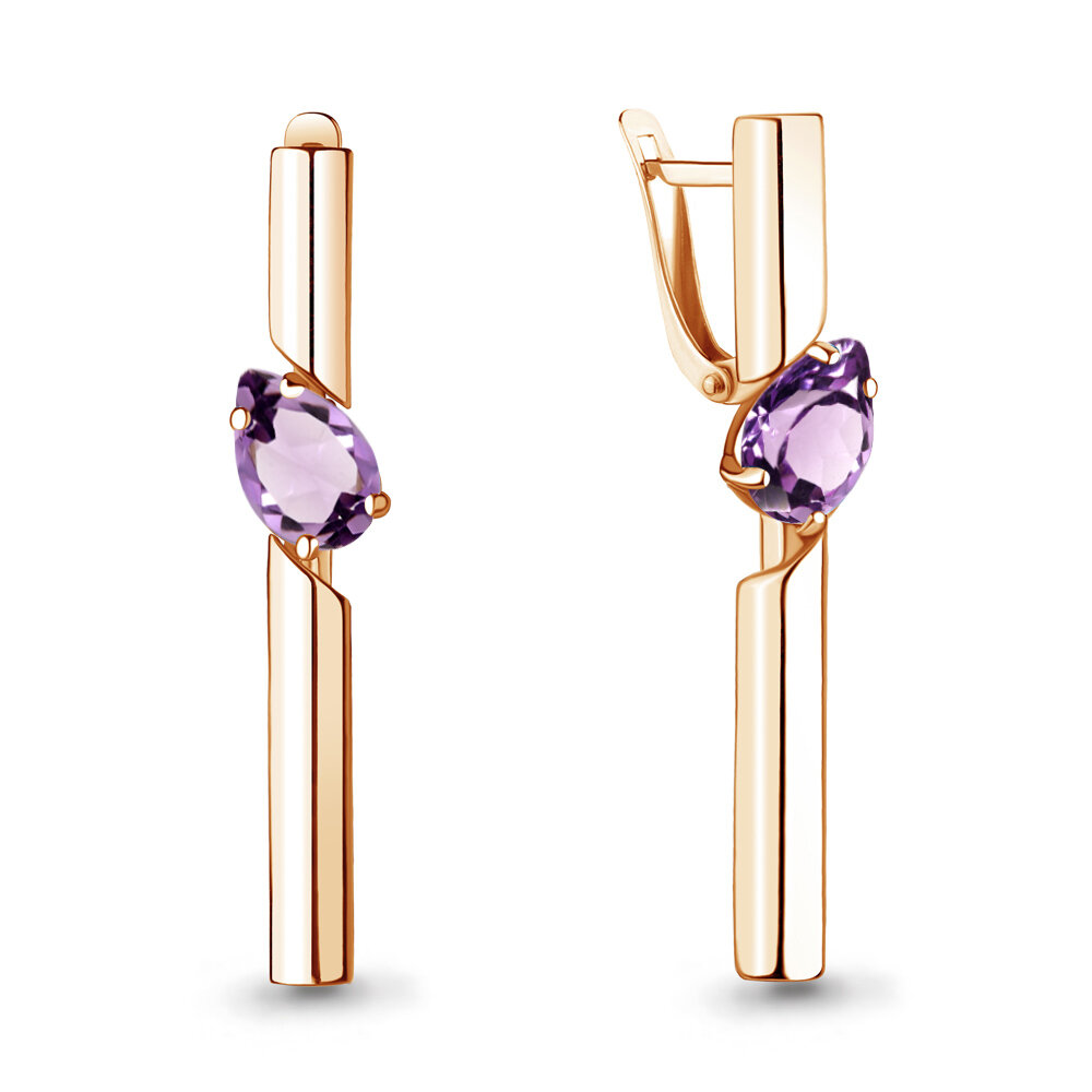 Купить Серьги из золочёного серебра Diamant online А4744704-п с аметистом, Серебро золочение 925°