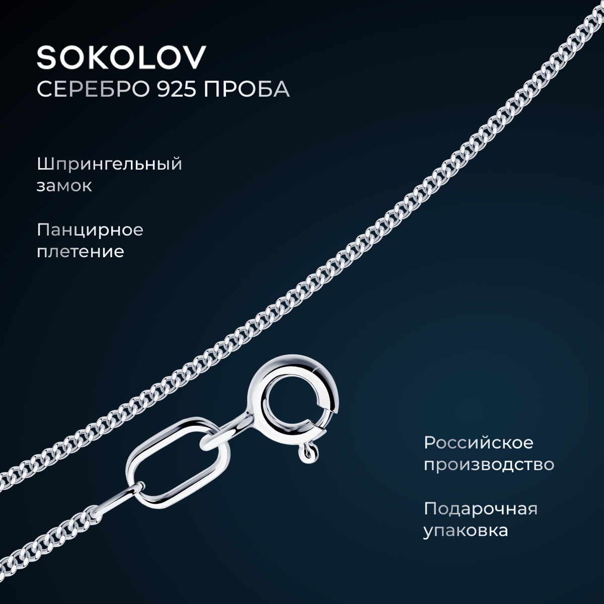 Цепь SOKOLOV, серебро, 925 проба, родирование