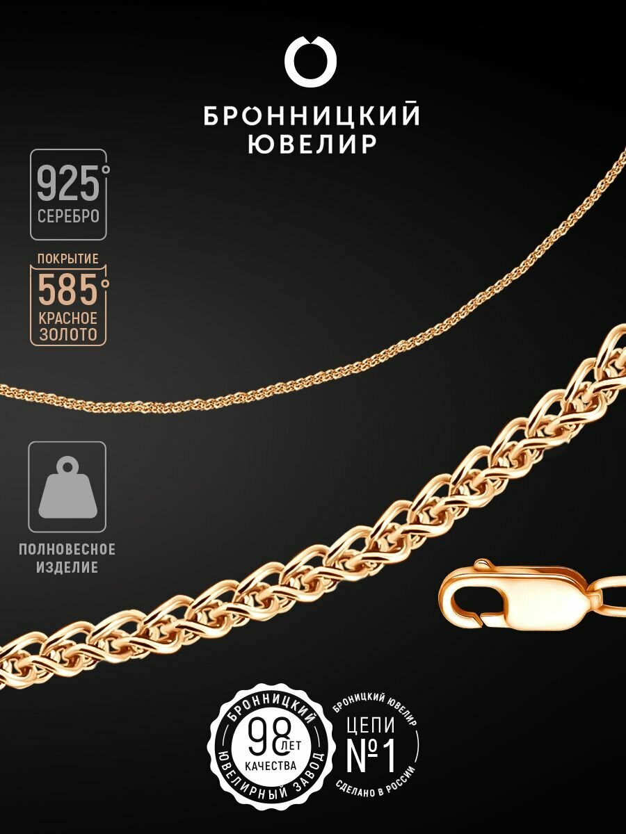Цепь Бронницкий Ювелир, серебро, 925 проба, золочение, длина 45 см, средний вес 2.49 г, , золотистый