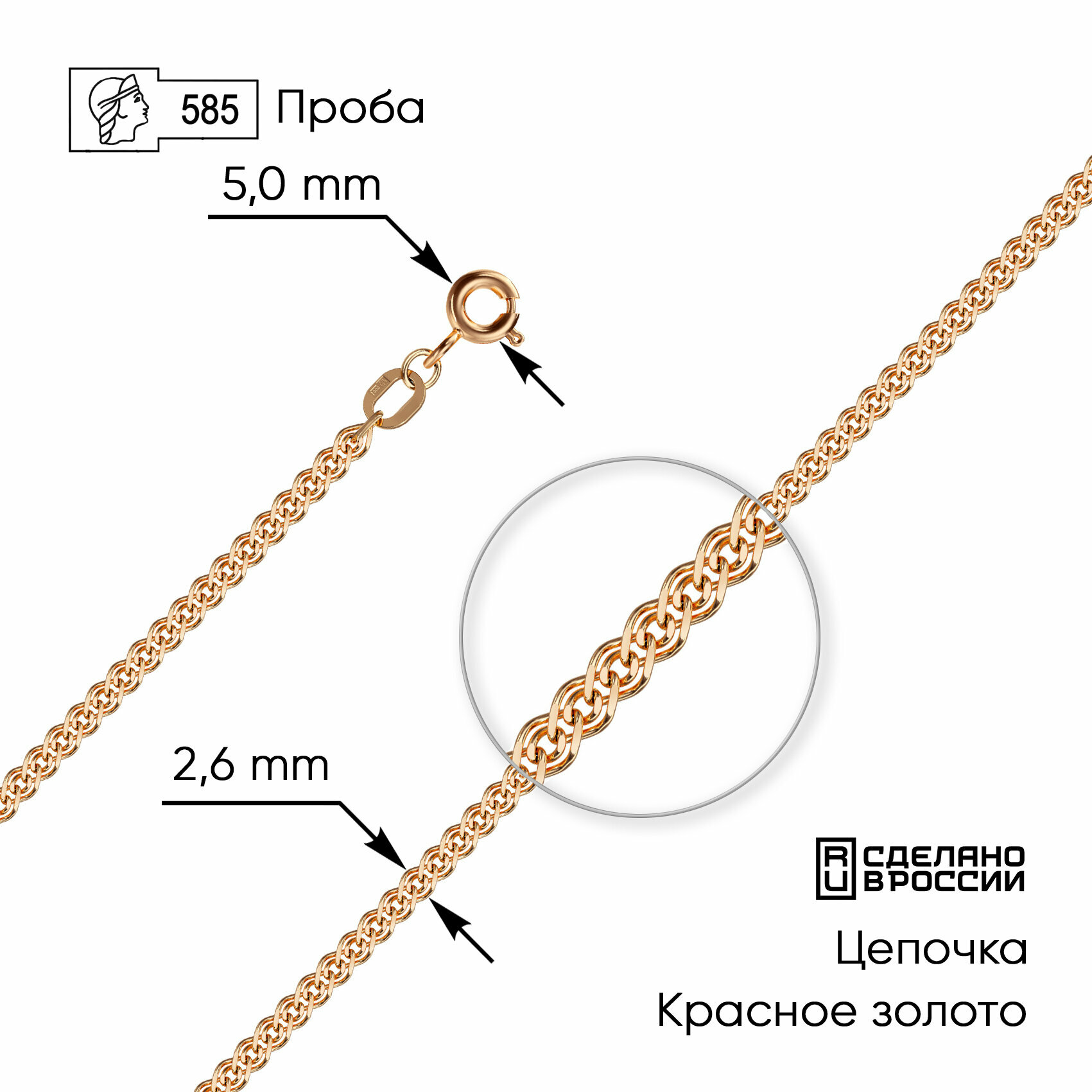 Цепь ZOLOTO.GOLD, красное золото, 585 проба, длина 50 см, средний вес 2.12 г