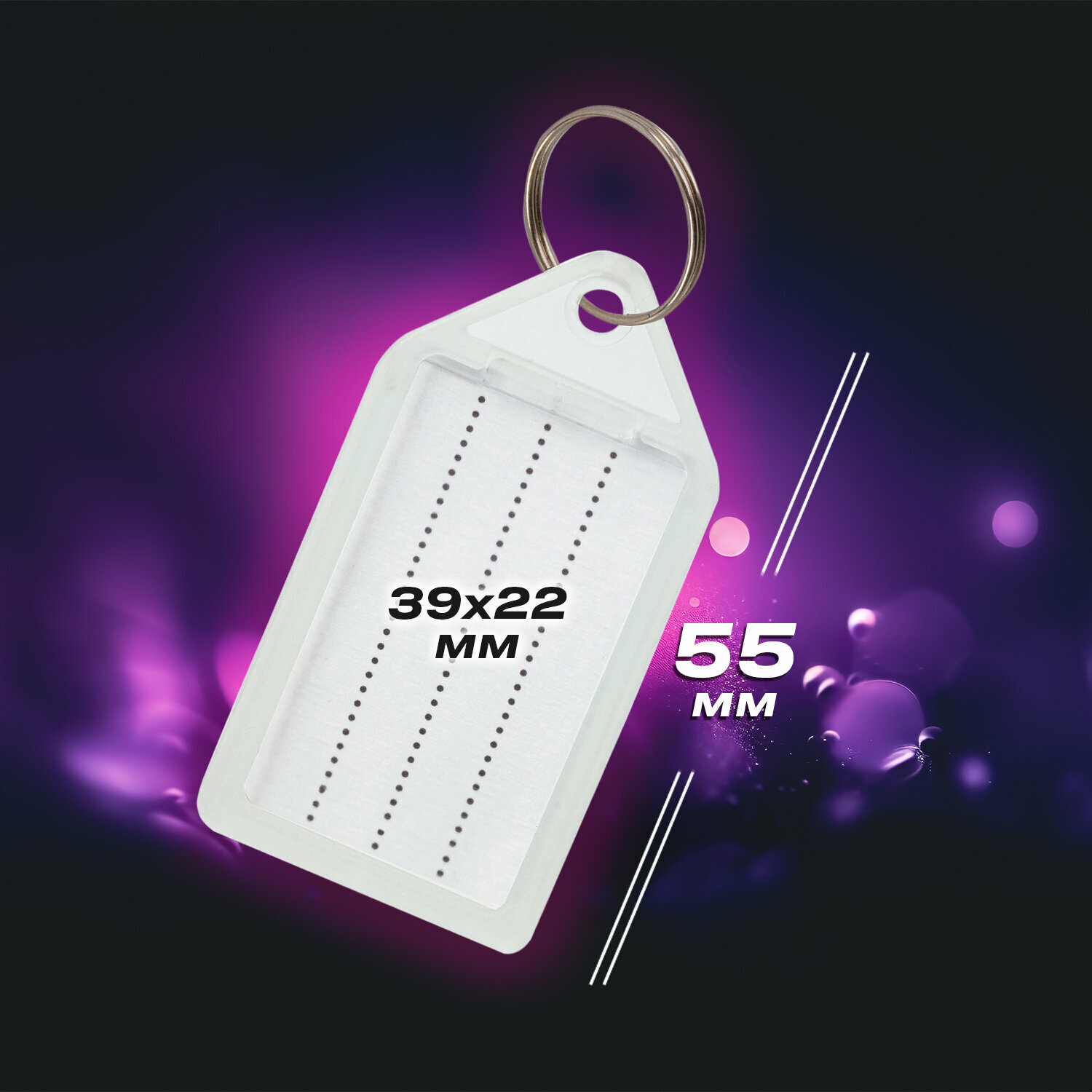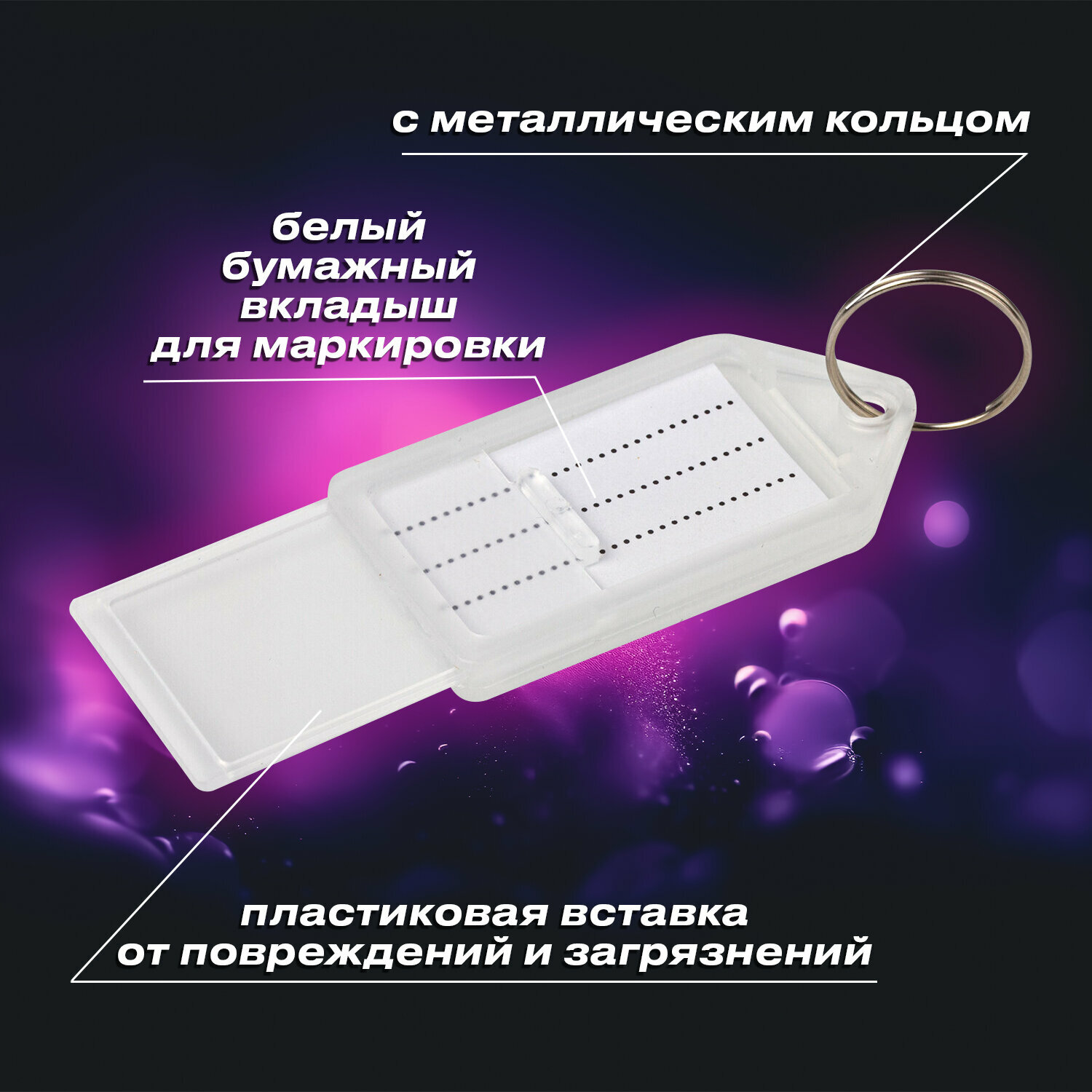 Брелок / бирки / ярлыки для ключей с кольцом Комплект 20 штук, длина 55 мм, инфо-окно 39х22 мм, Прозрачные, Brauberg, 237496