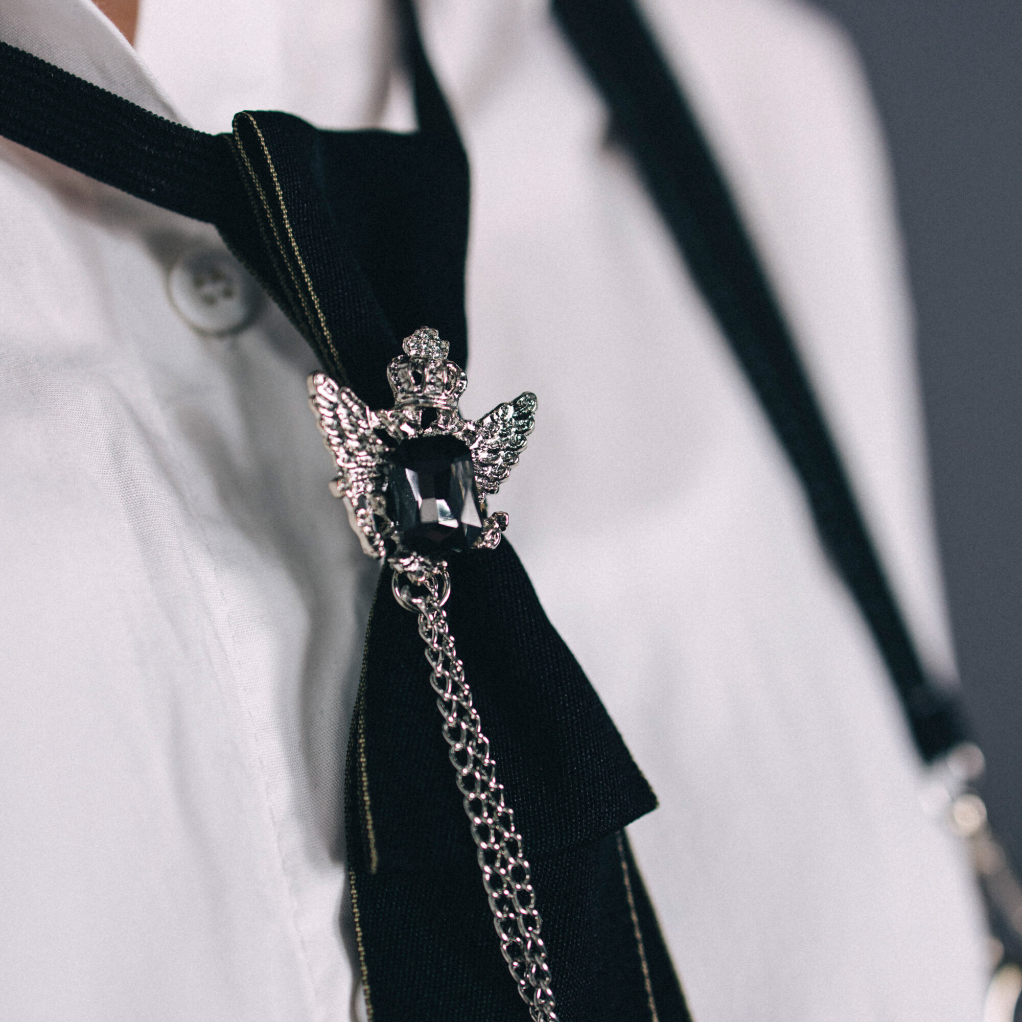 Галстук на шею мужской/женский с брошью