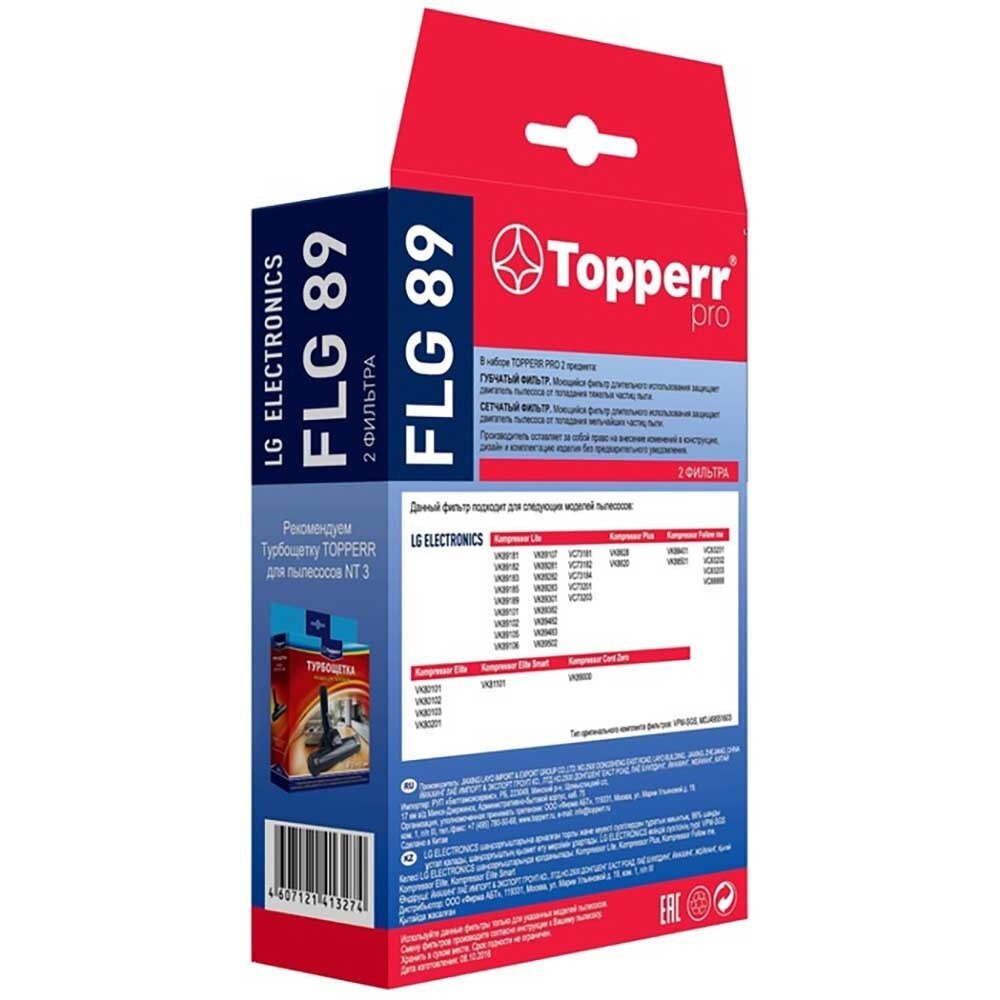 Topperr Комплект фильтров (губчатый фильтр+ сетчатый фильтр) для пылесосов LG, 3 шт., FLG 89