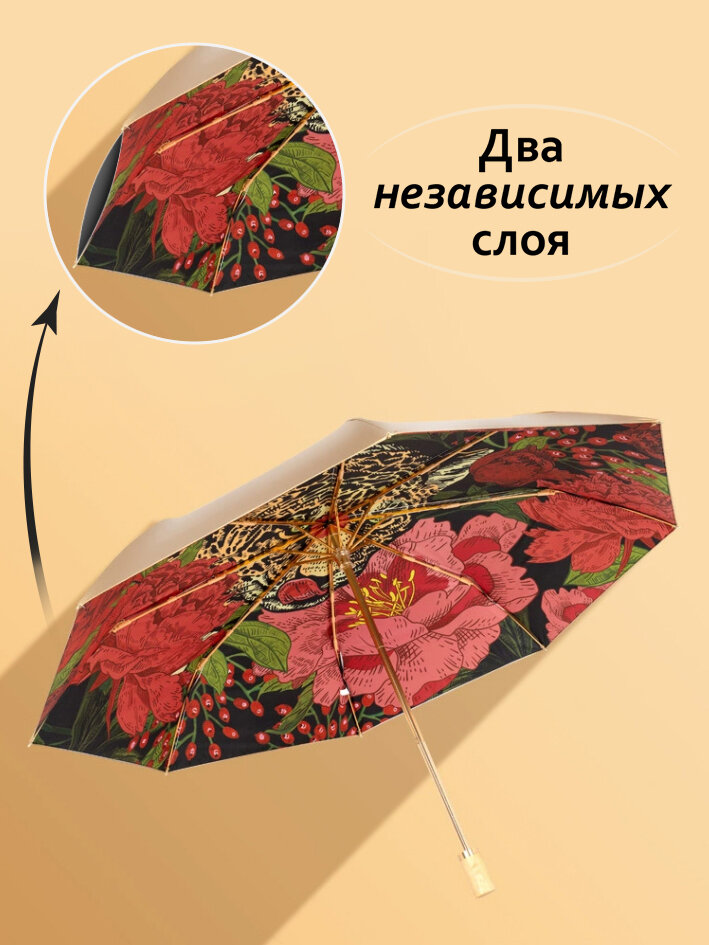 Зонт женский механический складной двусторонний Белоснежка "Испанский тигр", 3 сложения, 8 спиц + чехол интересное: