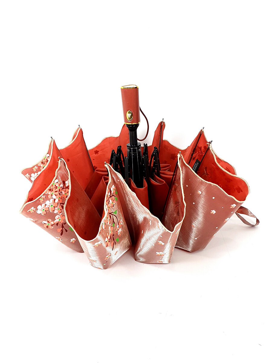 Зонт "Три Слона" женский №310-5, купол D=103 см, 10 спиц, суперавтомат бежево-черный