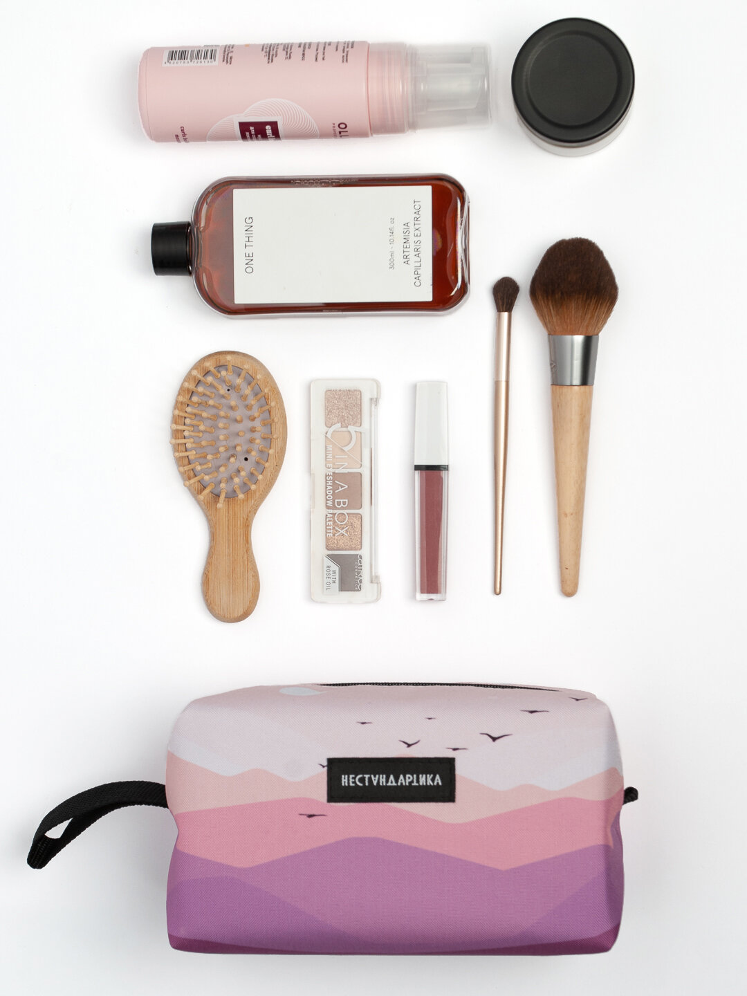 СохранитьКосметичка несессер дорожная мужская, женская с принтом Персиковый закат интересное: