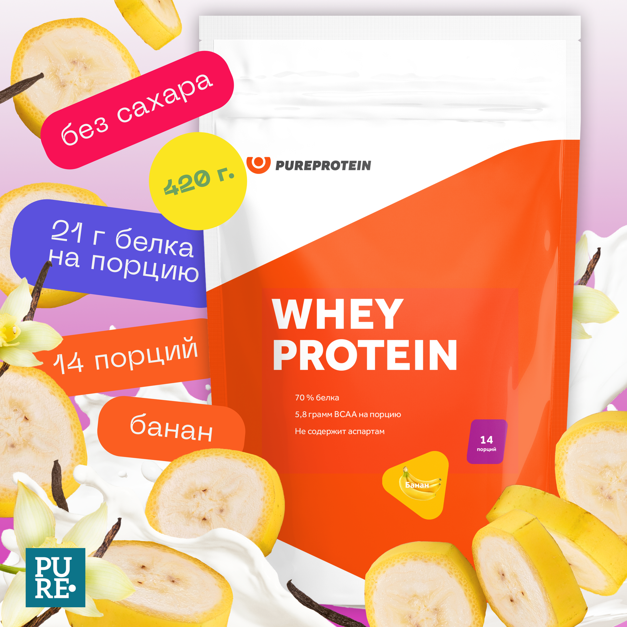 Протеин Pureprotein сывороточный Whey Банан 420г