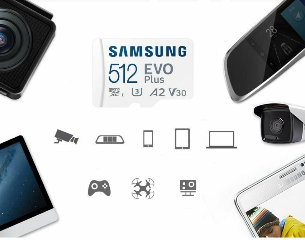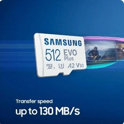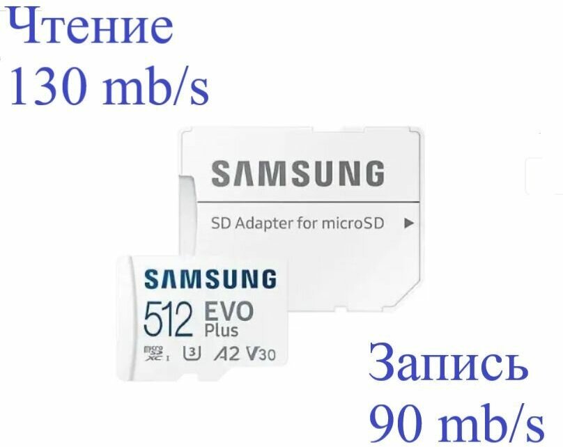 Карта памяти Samsung EVO Plus microSDHC 512 ГБ A2, UHS Class 1 запись - 130 Мбайт/сек