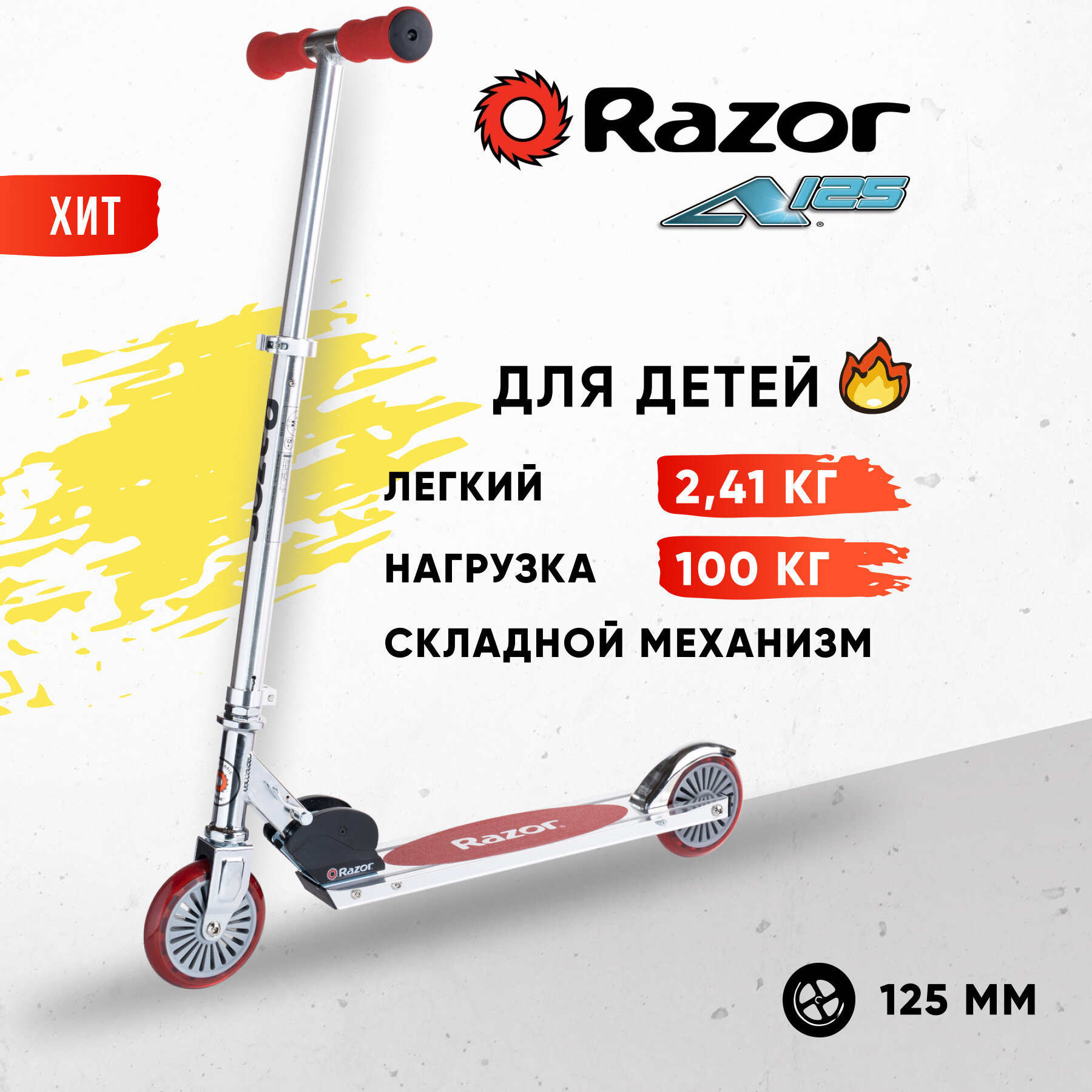 Самокат двухколёсный детский RAZOR A125 German Standart чёрный - складной лёгкий для детей от 3 летс колёсами 125 мм