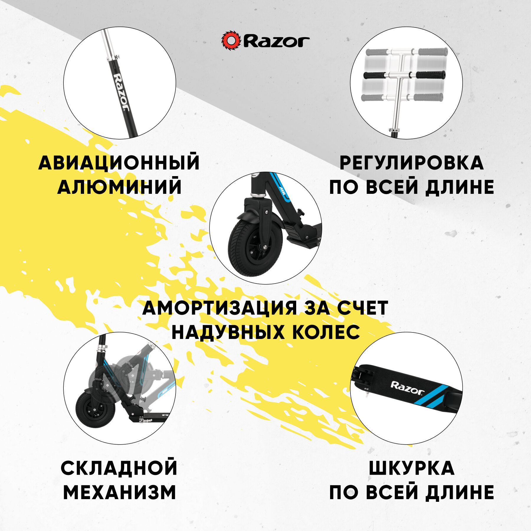 Самокат на надувных колёсах Razor A5 AIR (серебристый), лёгкий, складной, для города, для детей и взрослых