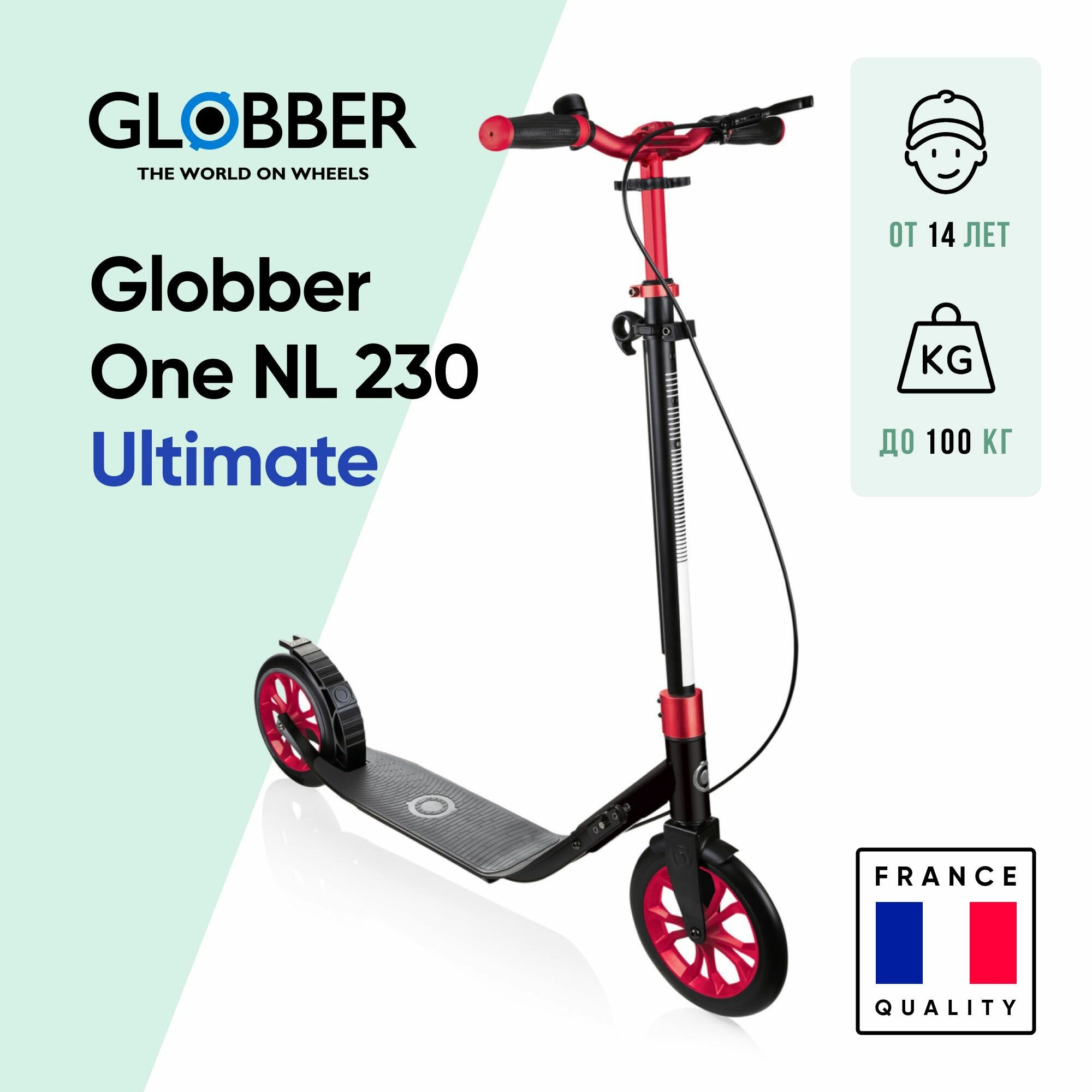 Городской самокат GLOBBER One NL 230 Ultimate, черно-красный