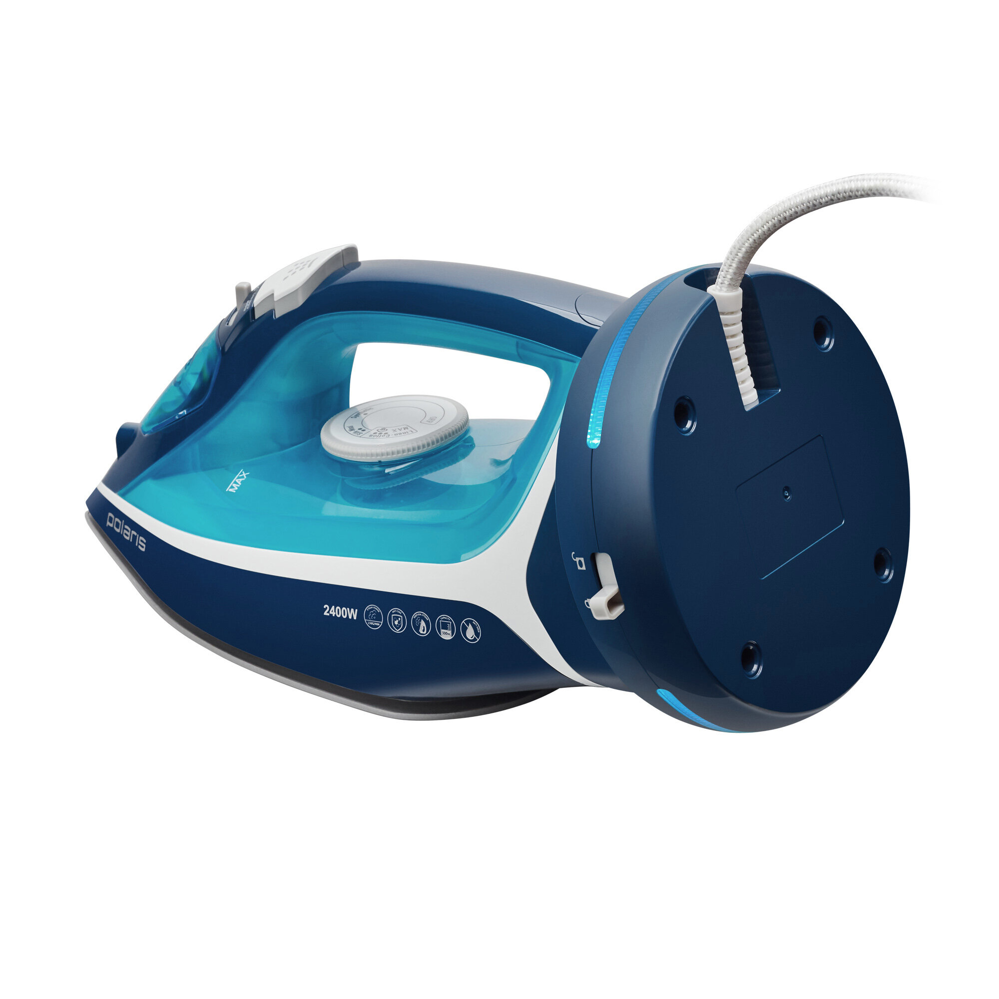 Беспроводной утюг Polaris PIR 2444K Cord[LESS], 2400Вт, синий/белый интересное: