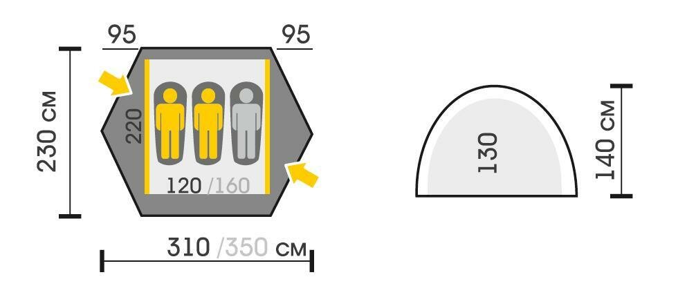 | Минусы: | габариты и вес, но блин это 3х местная палатка с двумя тамбурами, поэтому это особенность, а не недостаток! |