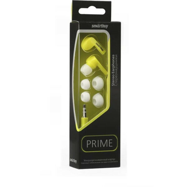 Наушники SmartBuy® PRIME, динамики 10мм, плоский каб, желт,3 пары вставок(SBE-160)