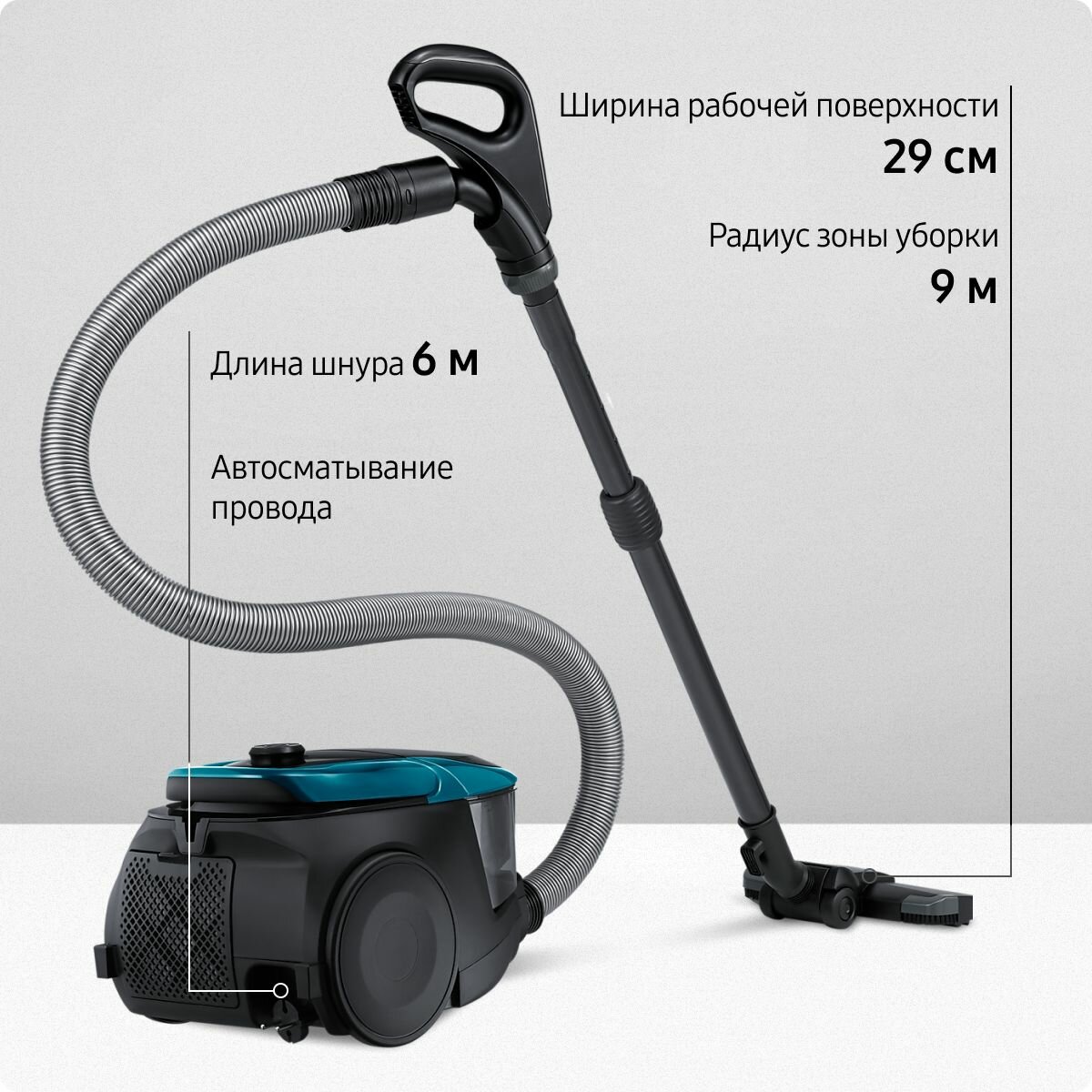 Пылесос Samsung VC18M3120VU с Cyclone Force и турбиной Anti-Tangle, голубой