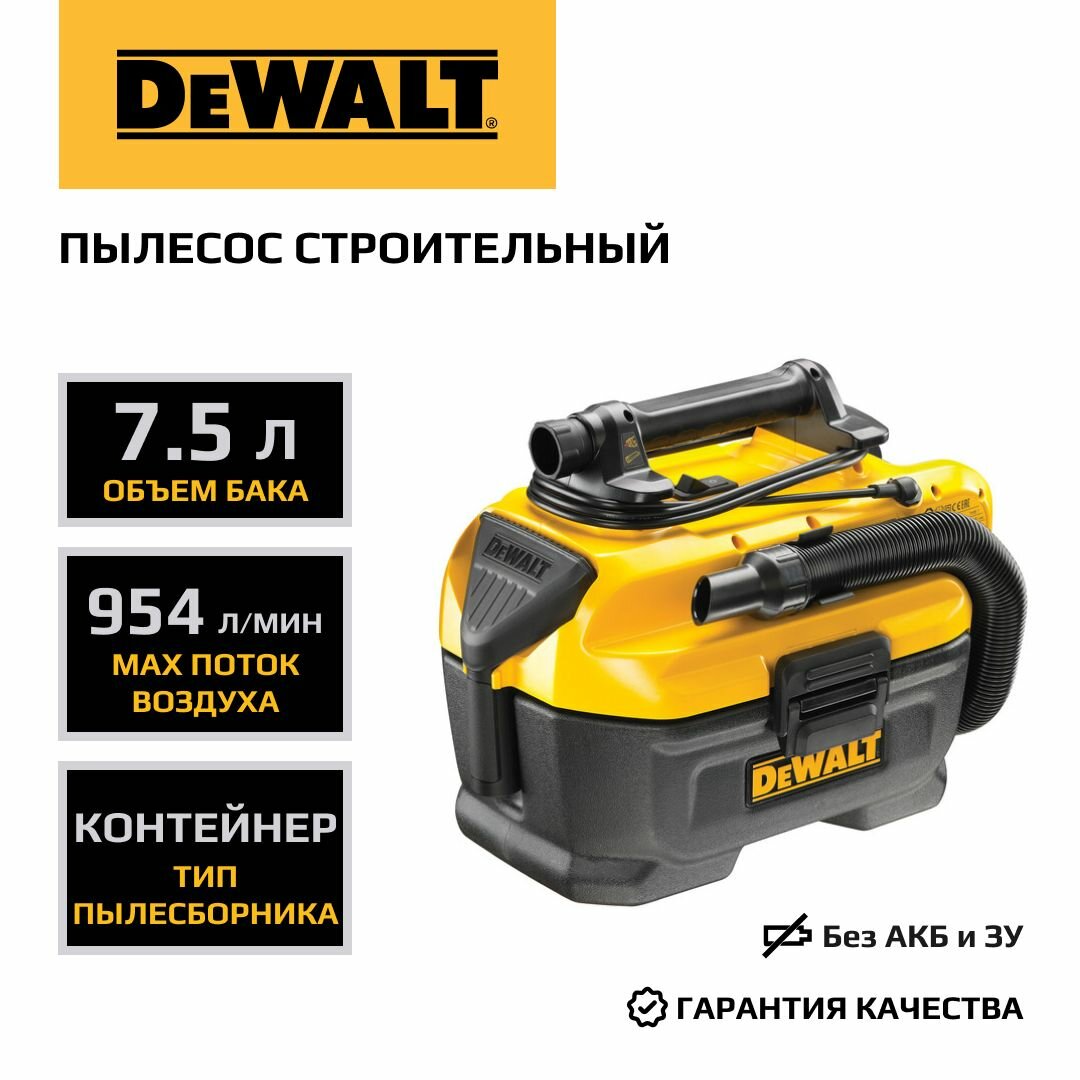 Пылесос DeWALT DCV584L, 300 Вт, 954 л/мин, 7.5 л интересное: