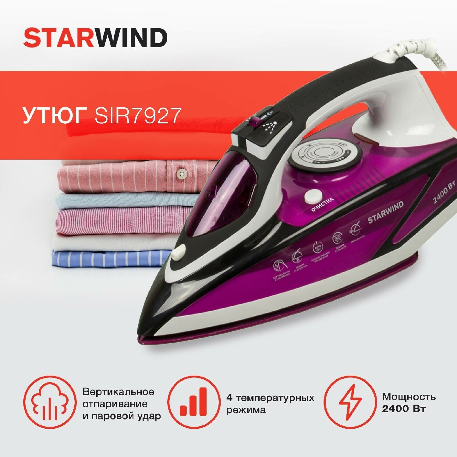 Утюг StarWind SIR7927 2400Вт, фиолетовый/черный/белый (SIR7927)