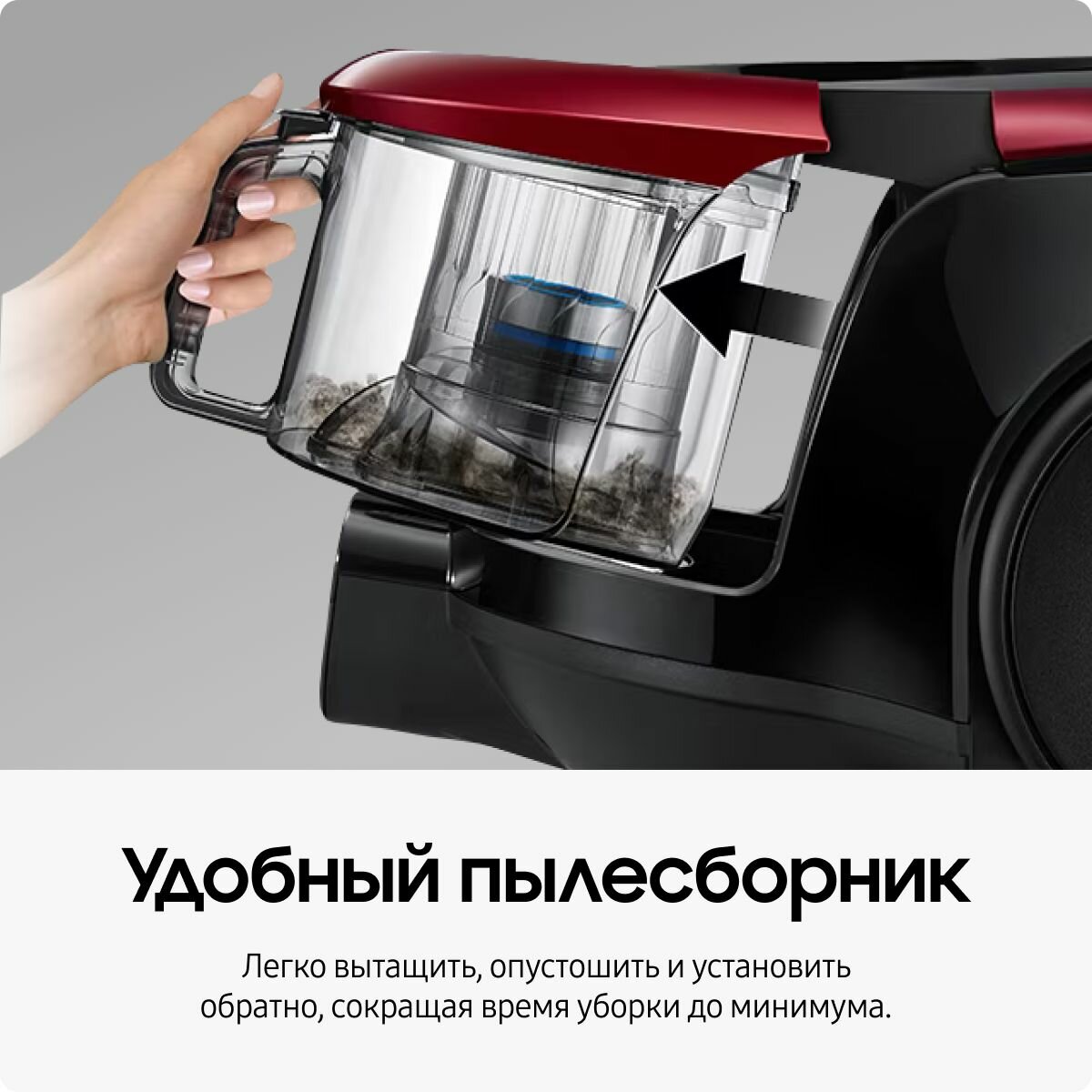 СохранитьПроводной пылесос для дома с контейнером Samsung VC18M21A0S1/EV, 1800 Вт, 1,5 л, с турбиной Anti-Tangle и автосматыванием сетевого шнура, бордовый интересное: