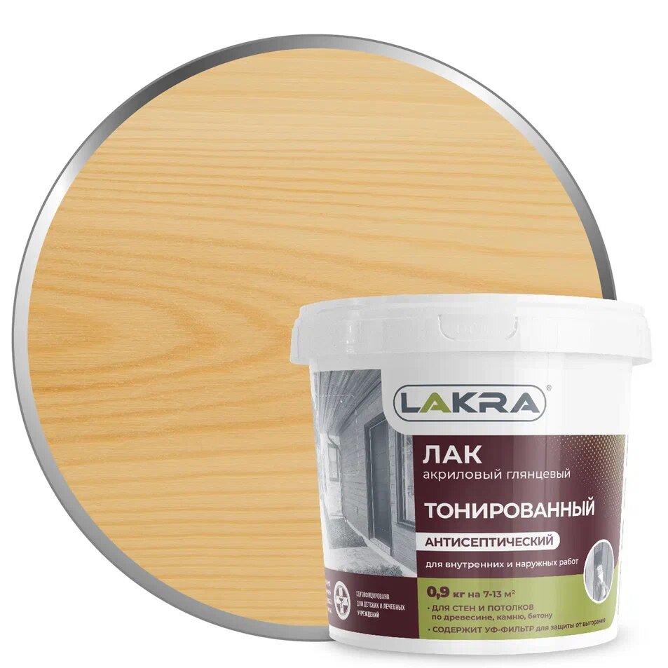 Лак Лакра Тонированный с антисептическими свойствами бесцветный, глянцевая, 0.9 кг, 0.9 л