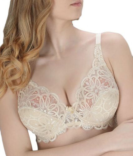 Бюстгальтер кружевной с полу поролоном на косточках Blue Rose, размер 85С, бежевый