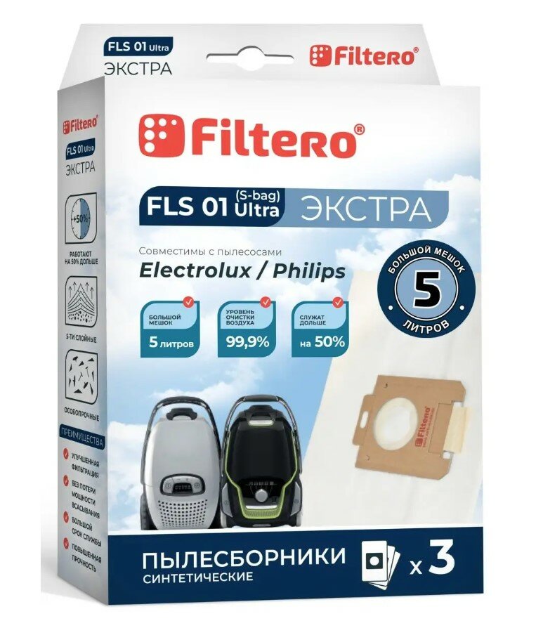 Мешки-пылесборники Filtero FLS 01 (S-bag) Ultra Экстра, для Electrolux, Philips, синтетические, 3 шт