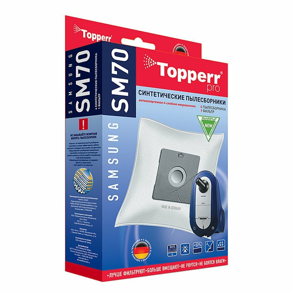 Пылесборники Topperr SM70 сверхпрочные нетканые (4пылесбор.) (1фильт.)