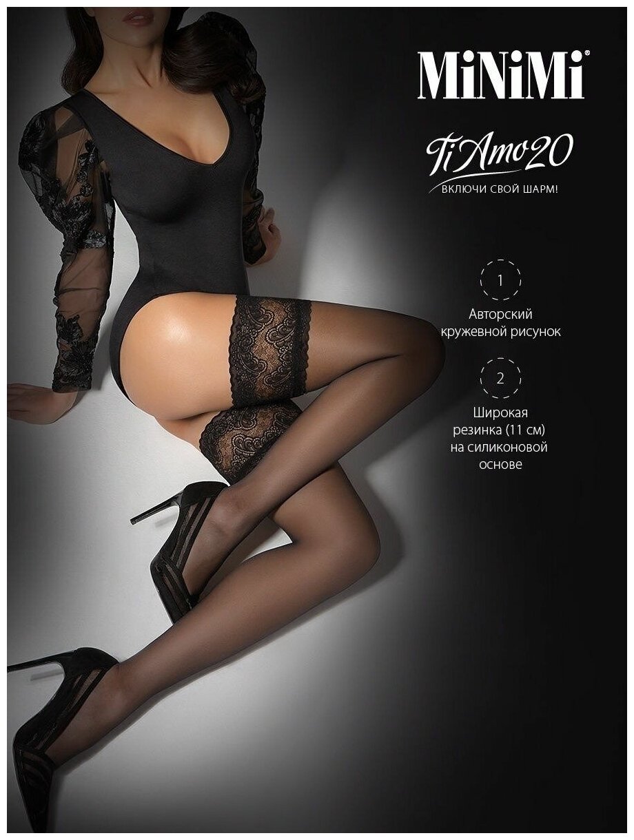 Миними / MiNiMi Ti Amo Charme - Чулки женские на широкой резинке 20 DEN Nero S/M