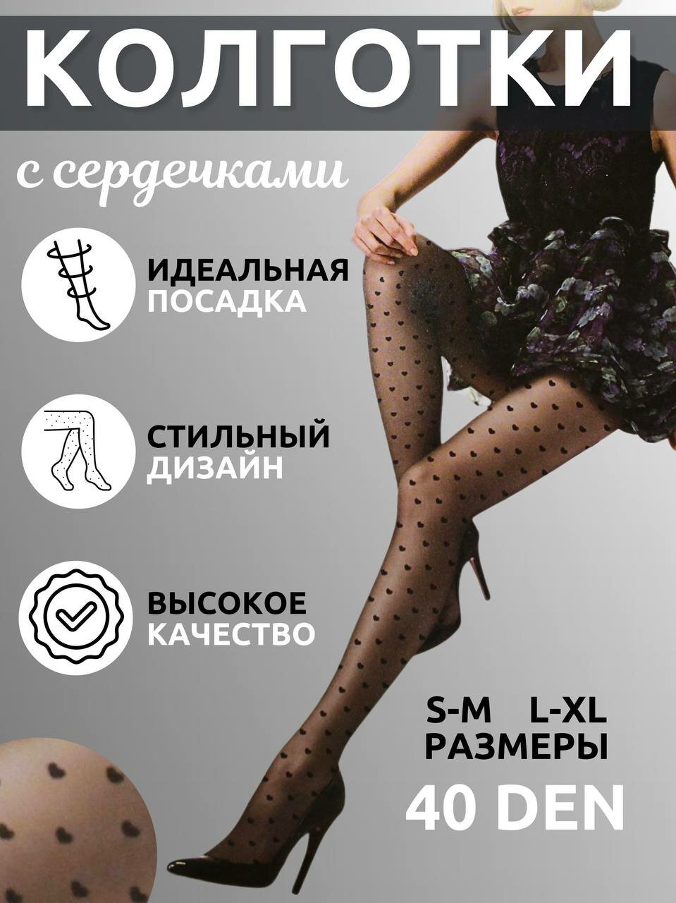 Колготки женские с рисунком сердечко 40 den