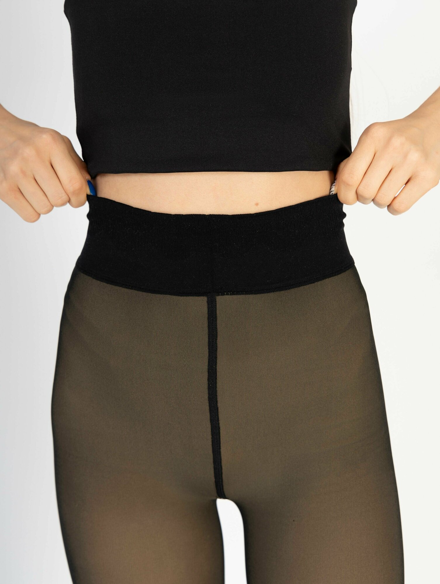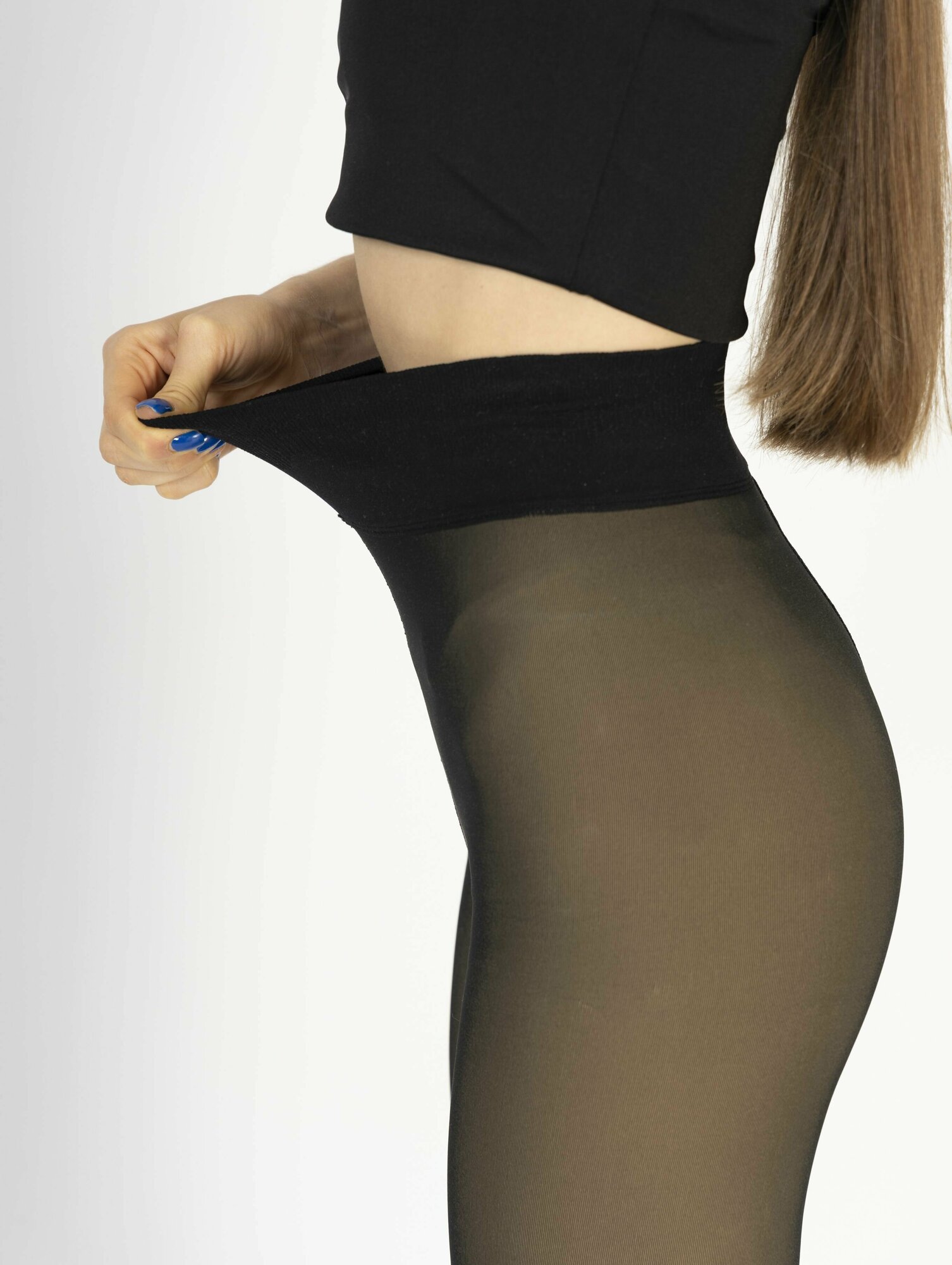 Колготки женские с эффектом вторая кожа "second skin" черные с широким поясом с мехом размер 42-46