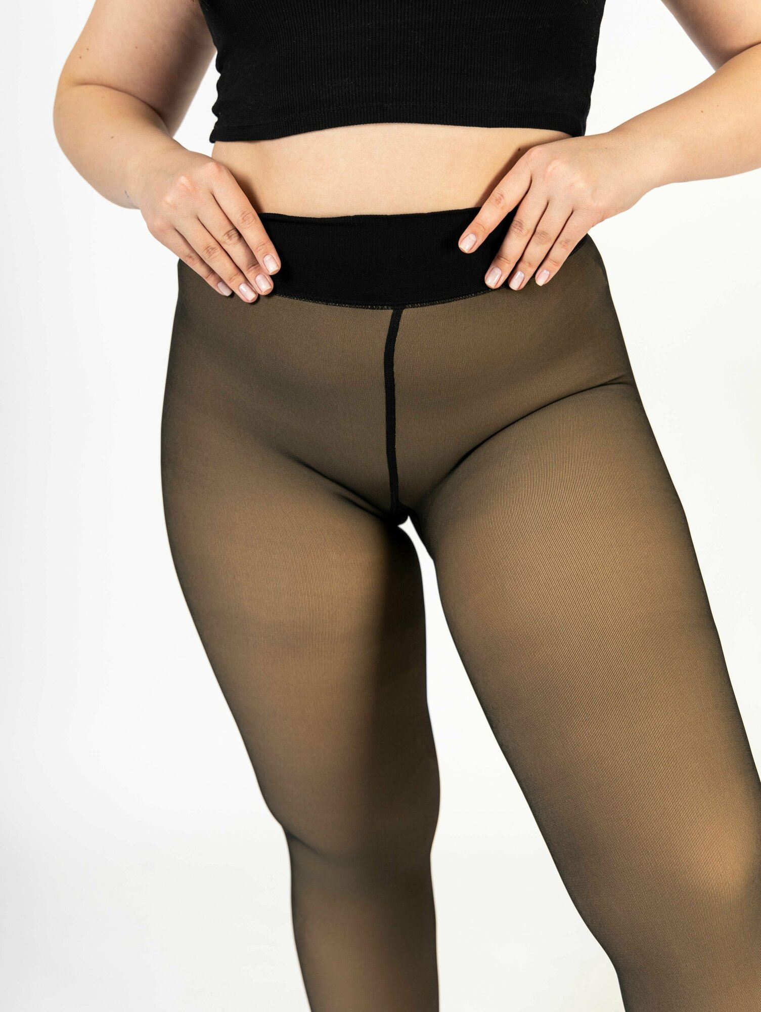 Колготки женские с эффектом вторая кожа "second skin" черные с широким поясом с мехом размер 42-46