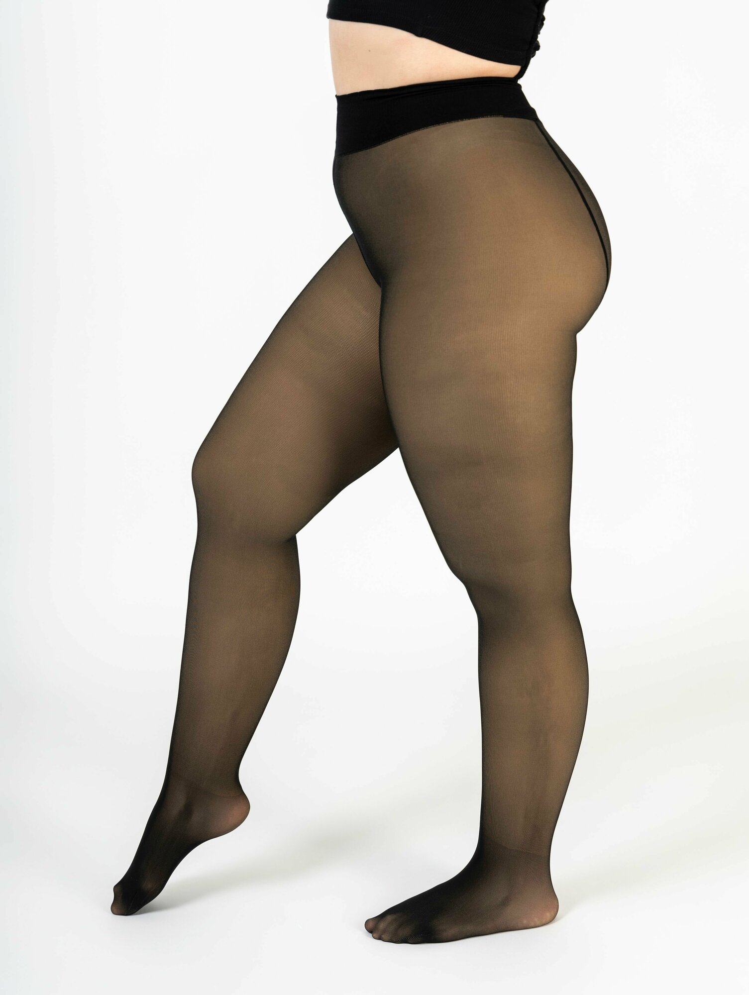 Колготки женские с эффектом вторая кожа "second skin" черные с широким поясом с мехом размер 48-54