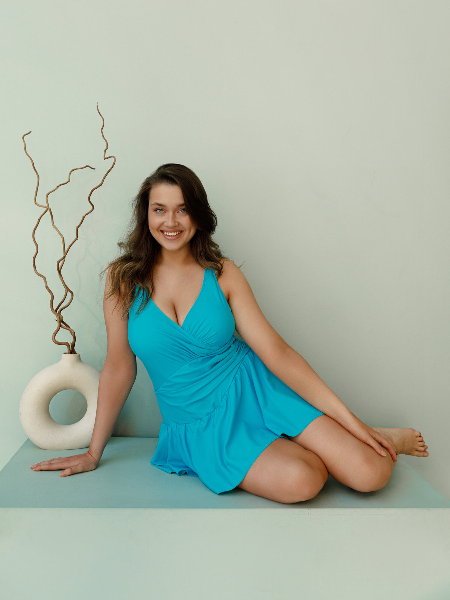 Слитный купальник платье больших размеров MOZZITO морская волна 52