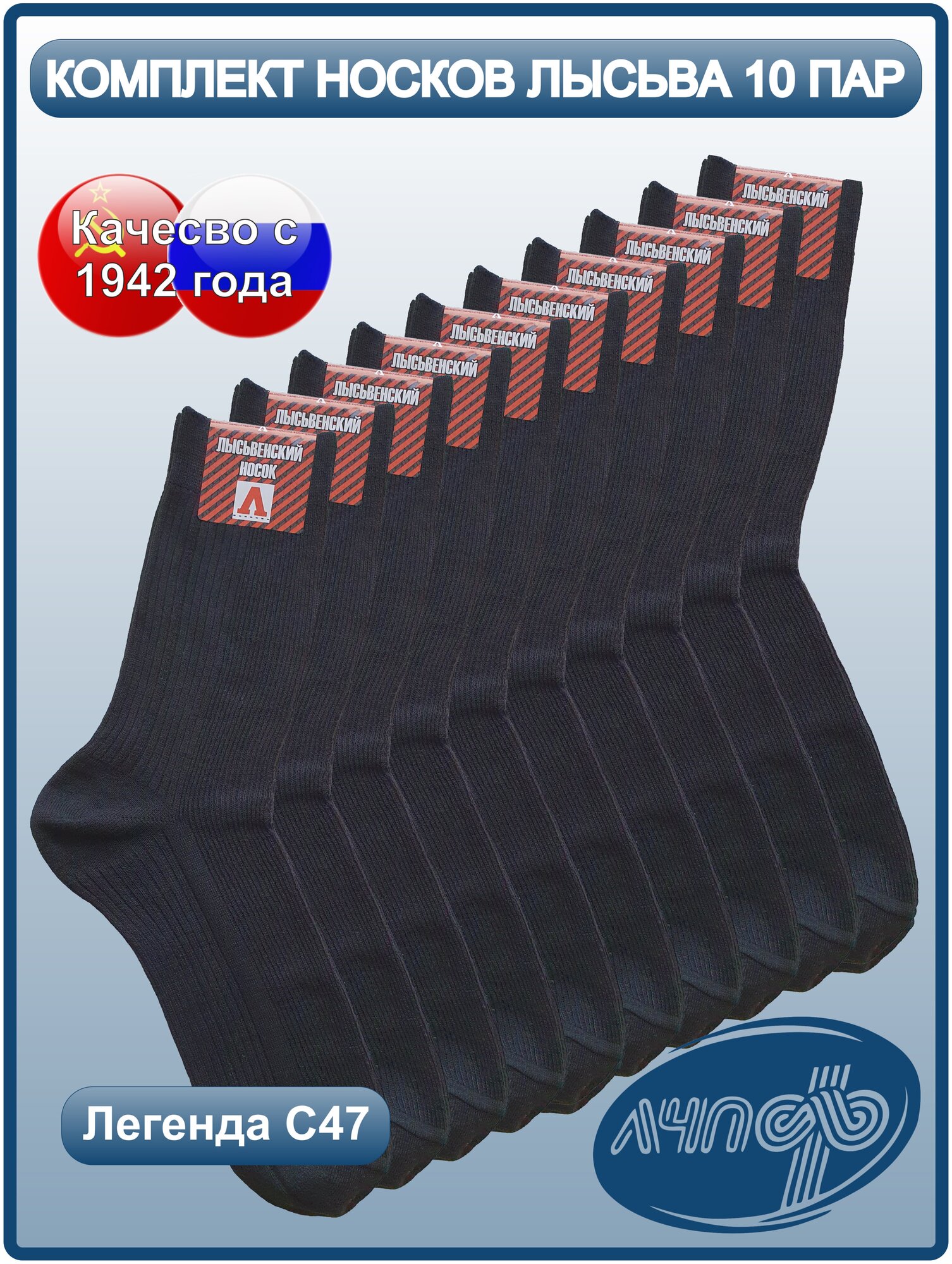 Носки Лысьва классические С47 лчпф черные 29(RU 44-46) размер, комплект 10 пар интересное: