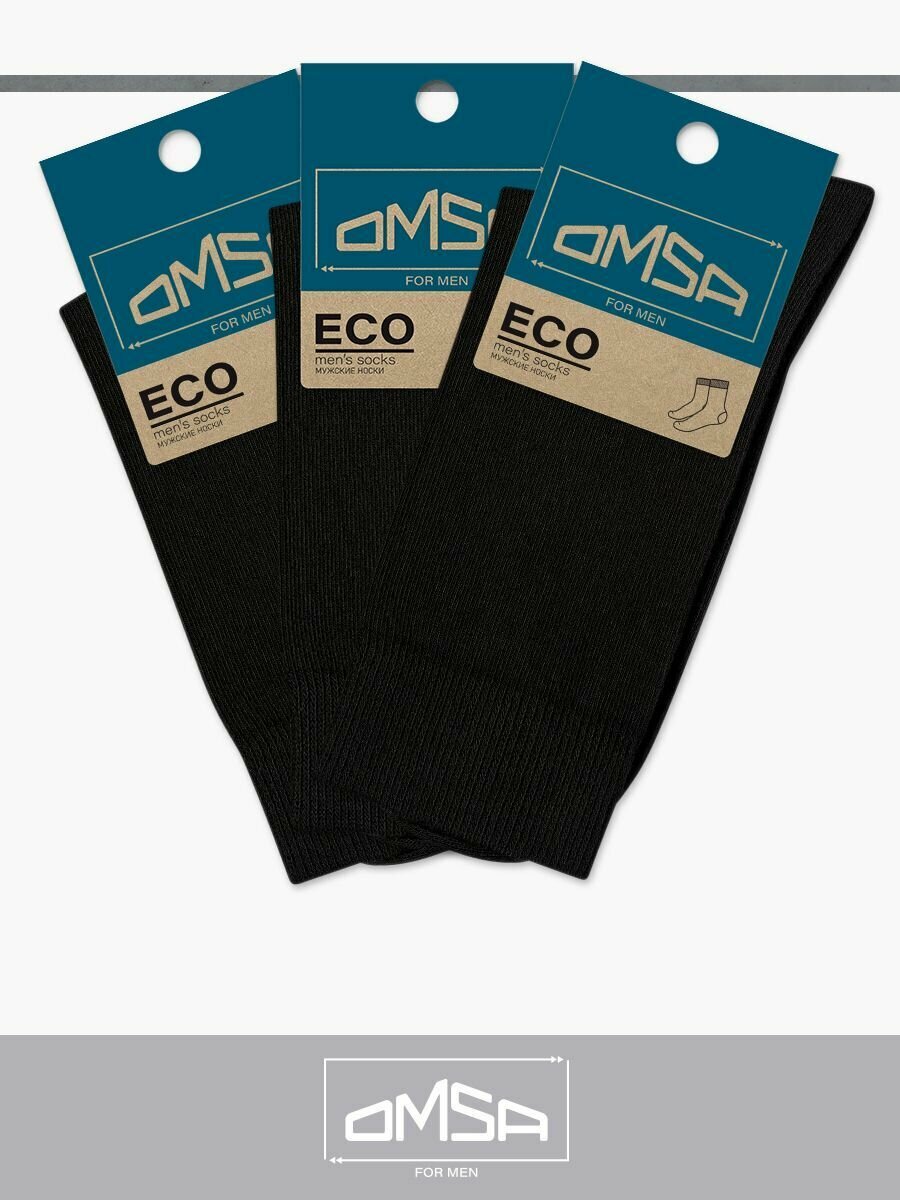 Купить Носки мужские OMSA ECO 401, высокие, комплект 3 шт, Цвет Nero, Размер 42-44 (27-29)