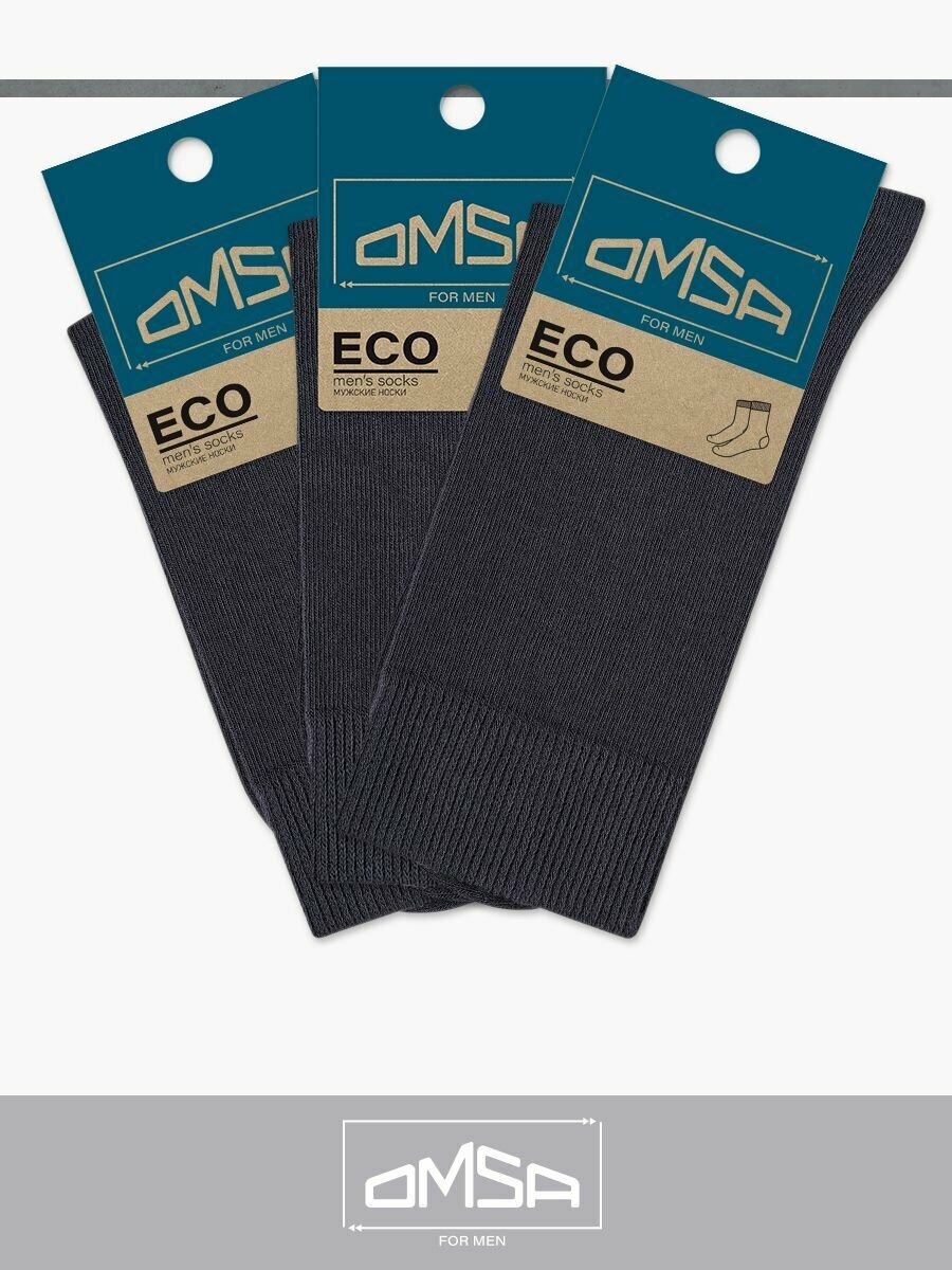Купить Носки мужские OMSA ECO 401, высокие, комплект 3 шт, Цвет Grigio Scuro, Размер 42-44 (27-29)