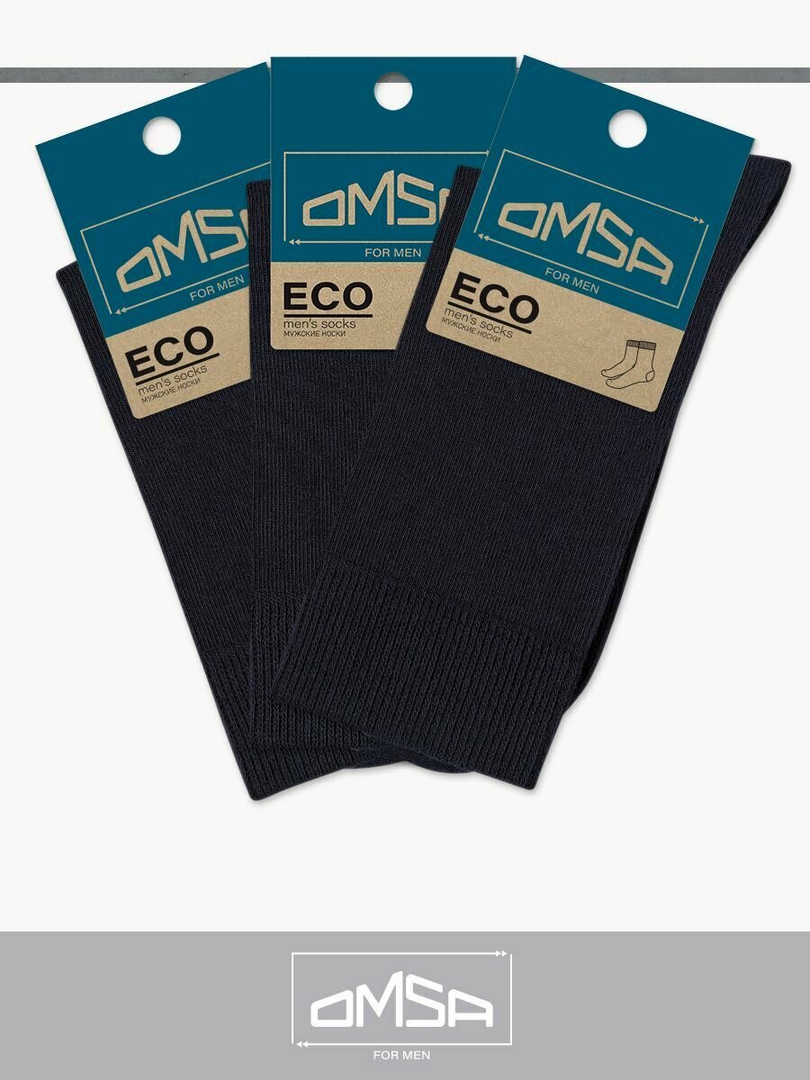 Носки мужские OMSA ECO 401, высокие, комплект 3 шт, Цвет Nero, Размер 42-44 (27-29)