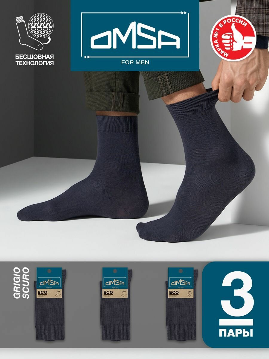 Купить Носки мужские OMSA ECO 401, высокие, комплект 3 шт, Цвет Grigio Scuro, Размер 39-41 (25-27)