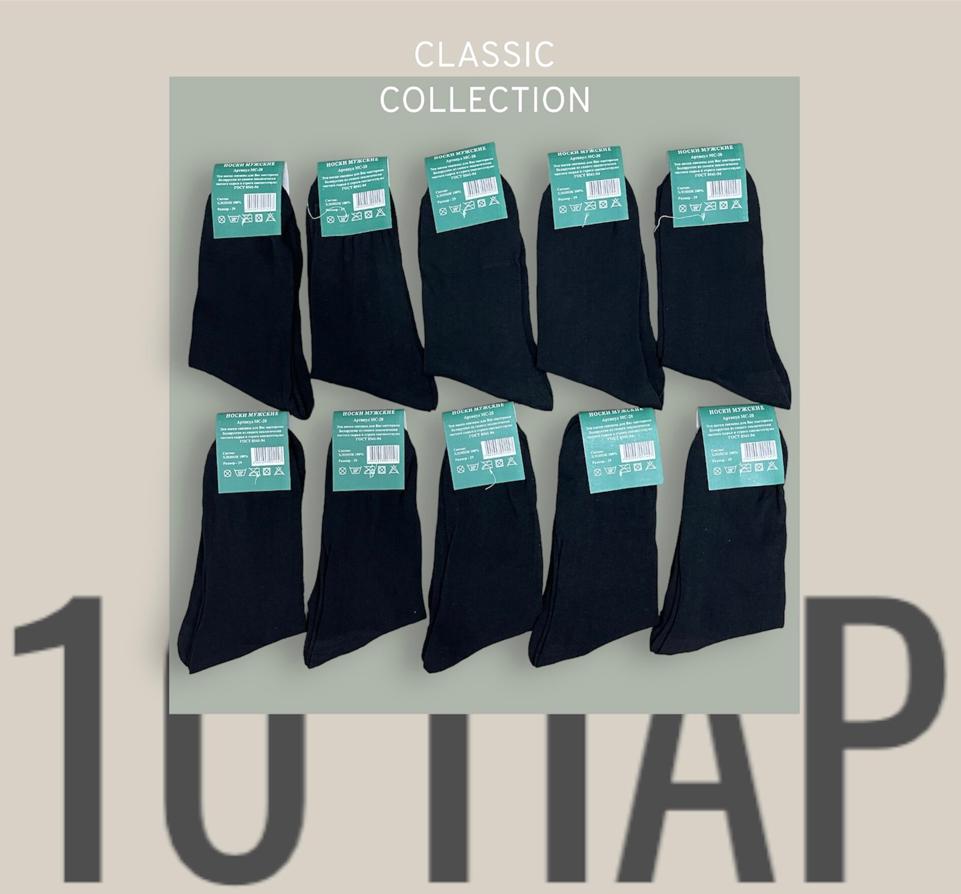 Носки мужские 10 пар/ Набор мужских носков 10 пар Белорусский хлопок (29)