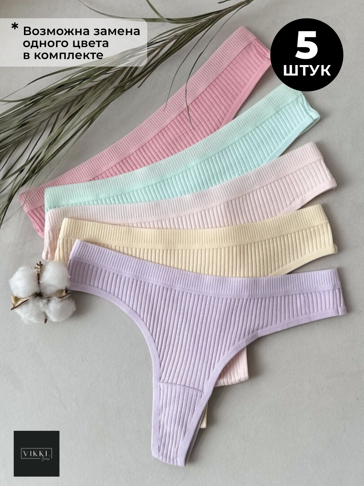 Набор трусы женские в рубчик стринги хлопок 10 штук 42-44 белый; черный; зеленый; тёмно-бежевый; пыльная роза; красный; бежевый; серый; голубой; синий