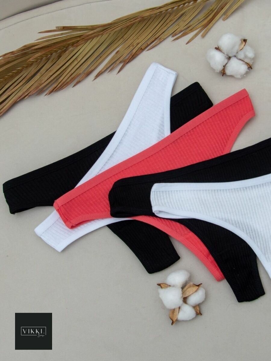 СохранитьНабор трусы женские в рубчик стринги хлопок 5 штук 44-46, Цвет: красный, черный, белый интересное: